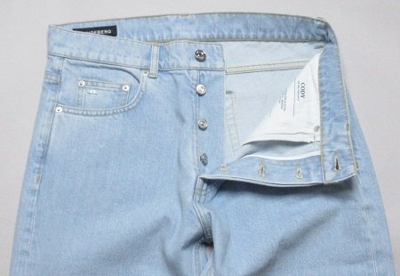 ・柔らかい生地にはウォッシュ加工が施されており、シルバー仕上げのボタンとリベットが特徴です。