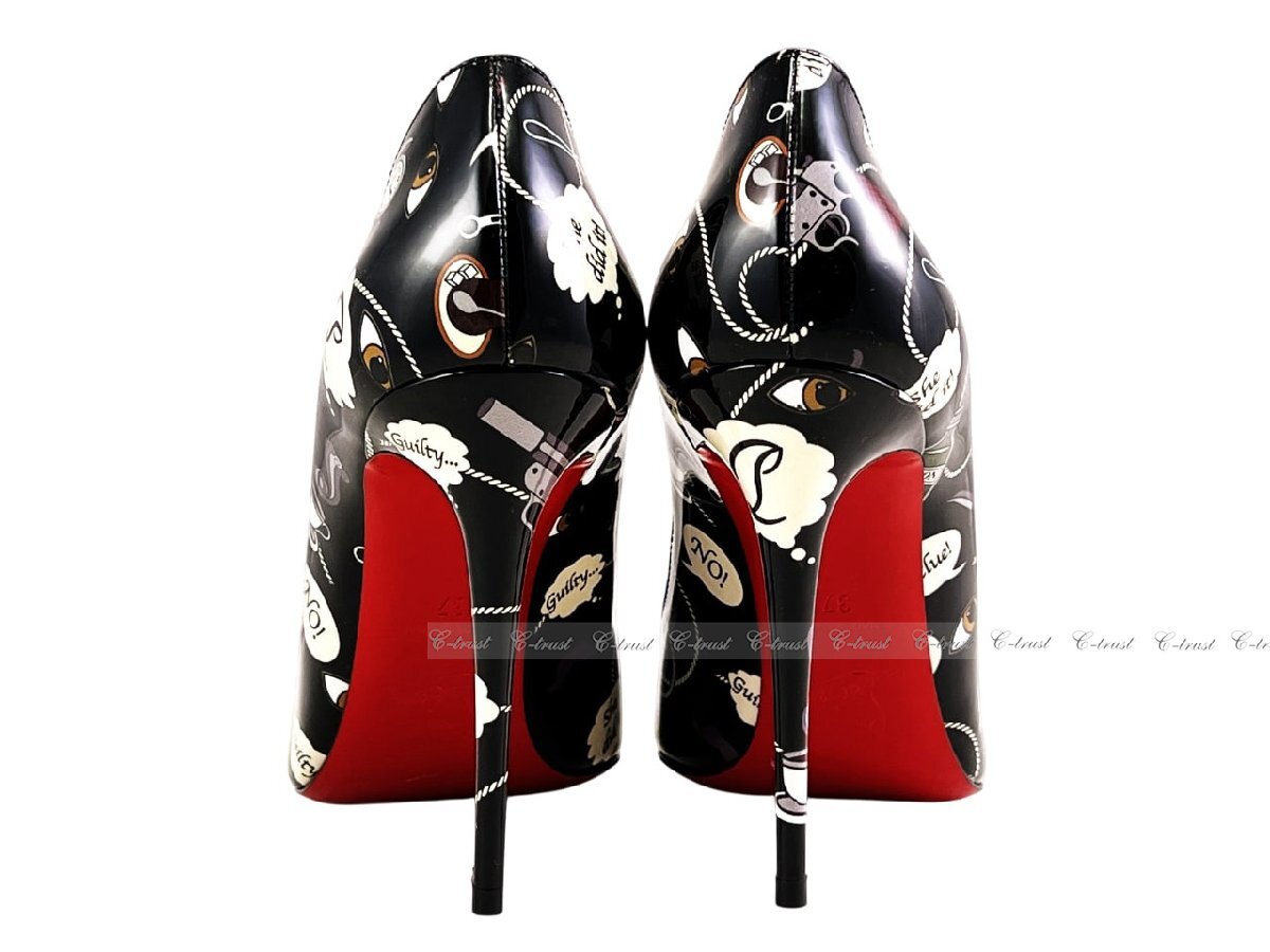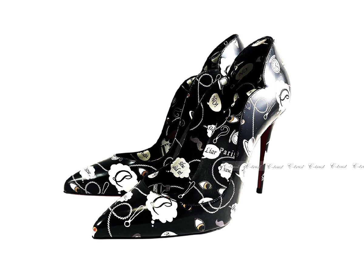 L919-37.. Christian Louboutin クリスチャン ルブタン パンプス HOT CHICK 100 ハイヒール シューズ パテントレザー ロゴ ★ BK-MULTI
