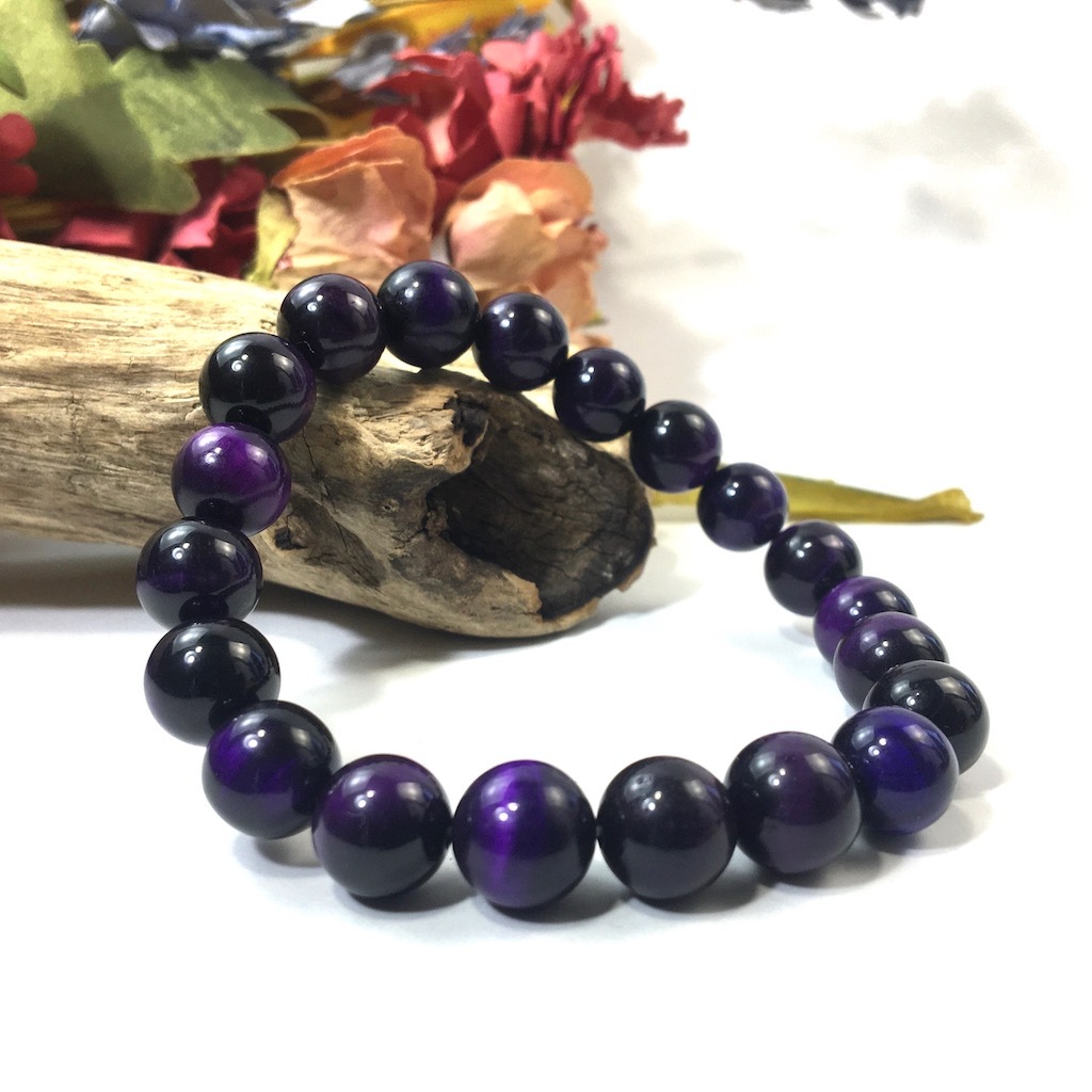 パープルタイガーアイ パワーストーン ブレスレット 10mm シンプル 開運 浄化 数珠ブレス メンズ・レディース 男性 ☆