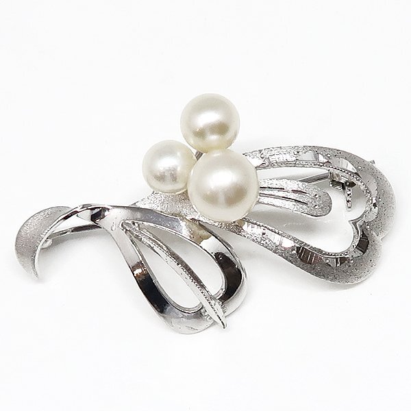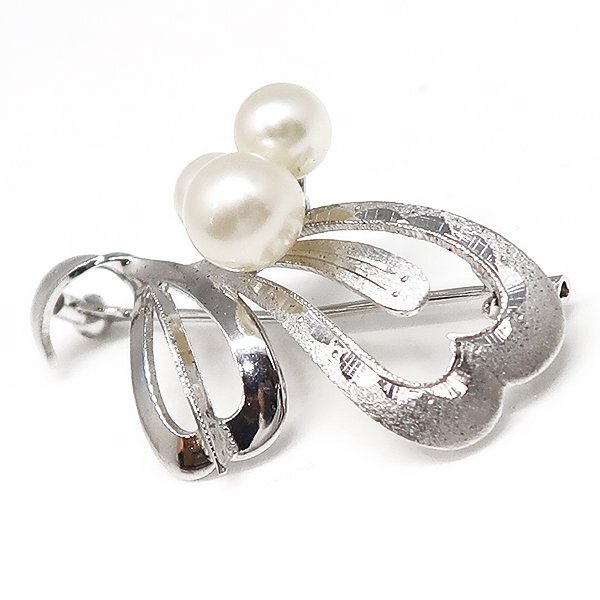 SV 銀 SILVER パール 真珠 デザインブローチ