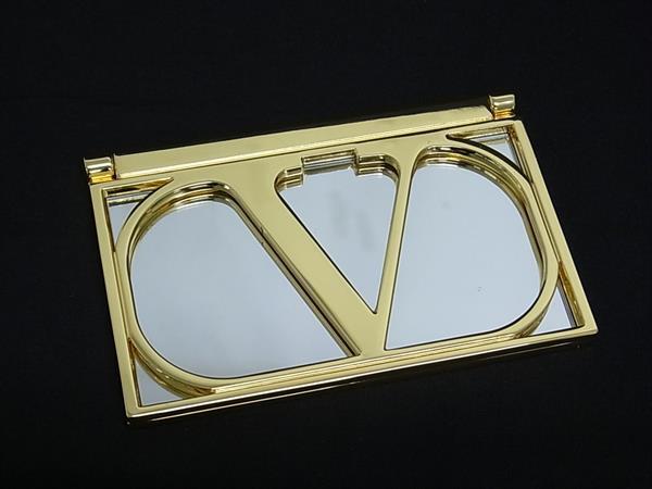 ■美品■ GIANNI VALENTINO ジャンニ ヴァレンティノ コンパクトミラー 手鏡 ハンドミラー レディース ゴールド系 DJ5085