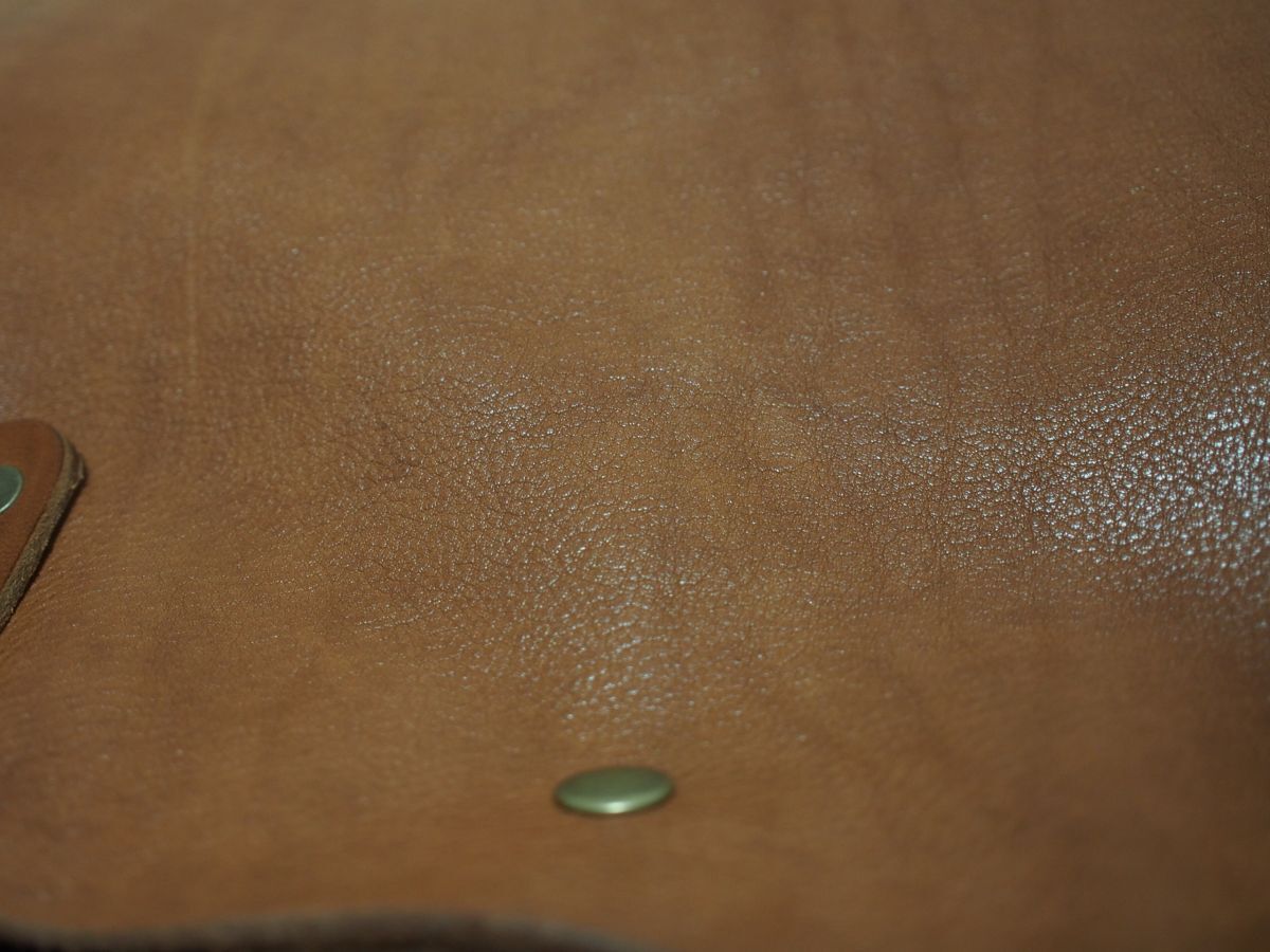 天然タンニン鞣しのプルアップレザーです。物理的な作業によってシワを強調させている特徴な革です。使い込んでいくうちにツヤ・味がでてきます。私たちが知っているかぎりこの革を使用しているところは、数少ないです。