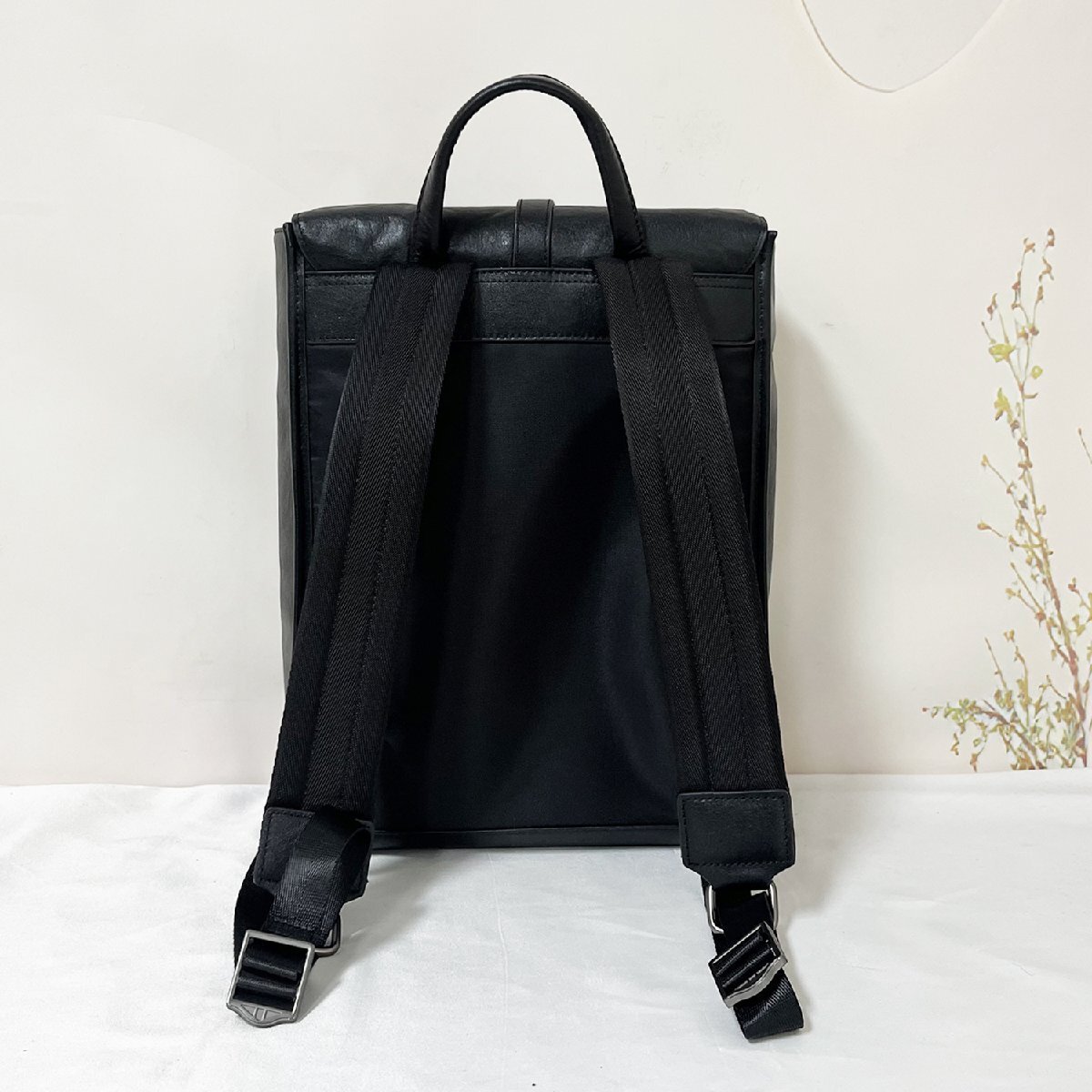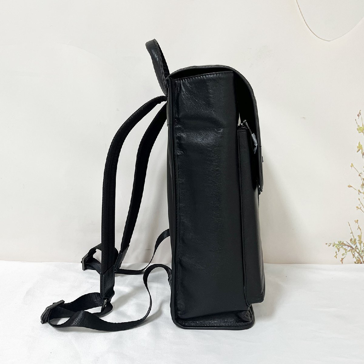 薄いながらも革製でレトロな雰囲気のあるバッグパック。