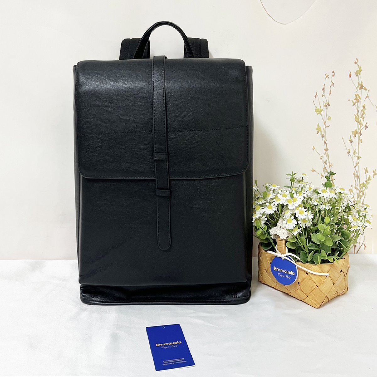 高級・バックパック 定価13万◆Emmauela・イタリア・ミラノ発◆牛革 本革 撥水 光沢 大容量 軽量 リュックサック ビジネス 旅行 出張