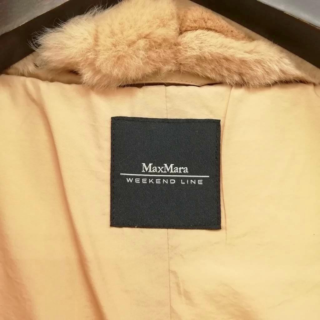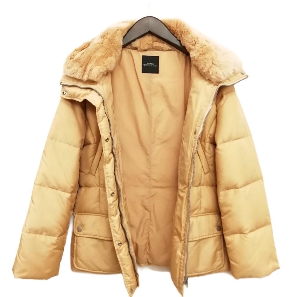 マックスマーラ ウィークエンドライン MAX MARA WEEKEND LINE ラビットファー付 ダウン ジャケット コート ベルト欠損 44 ベージュ系 レディース