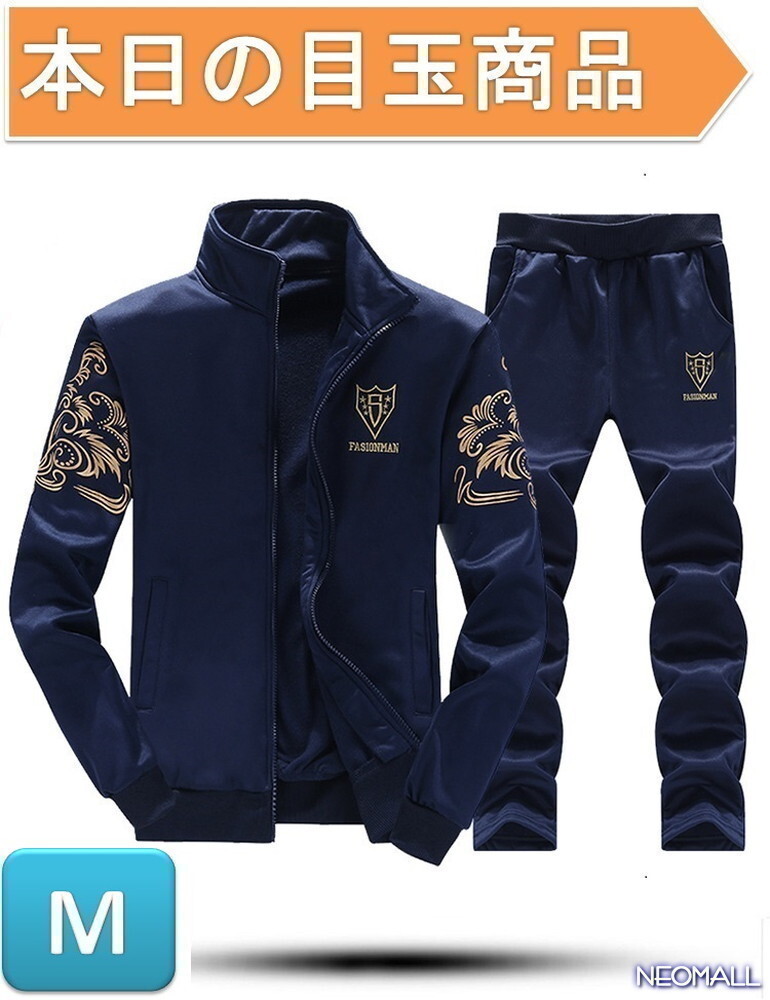 【今日の目玉】メンズセットアップ 上下セット ☆300 ネイビー Mサイズ ジャージ スウェット お兄系 部屋着 おしゃれ