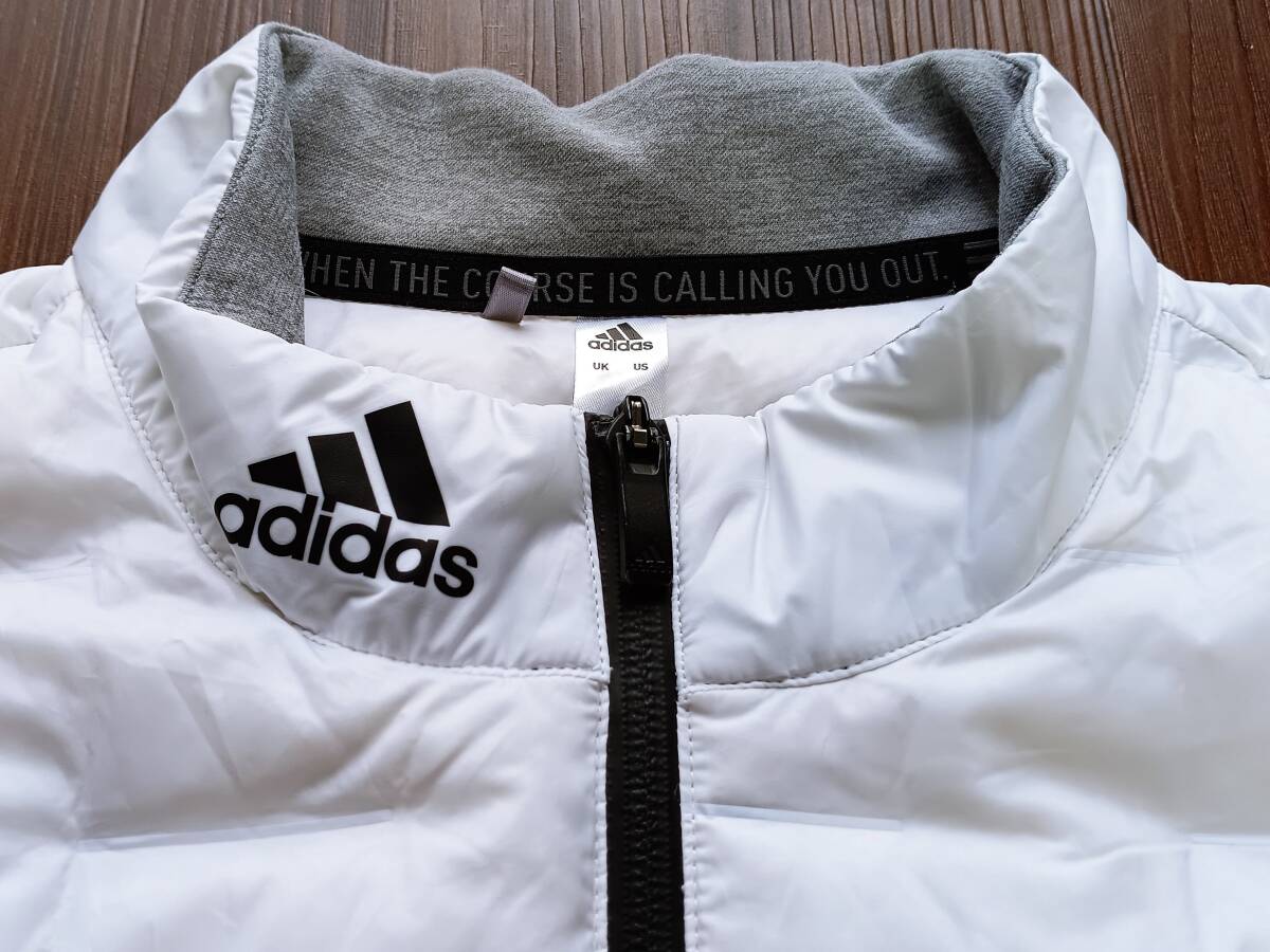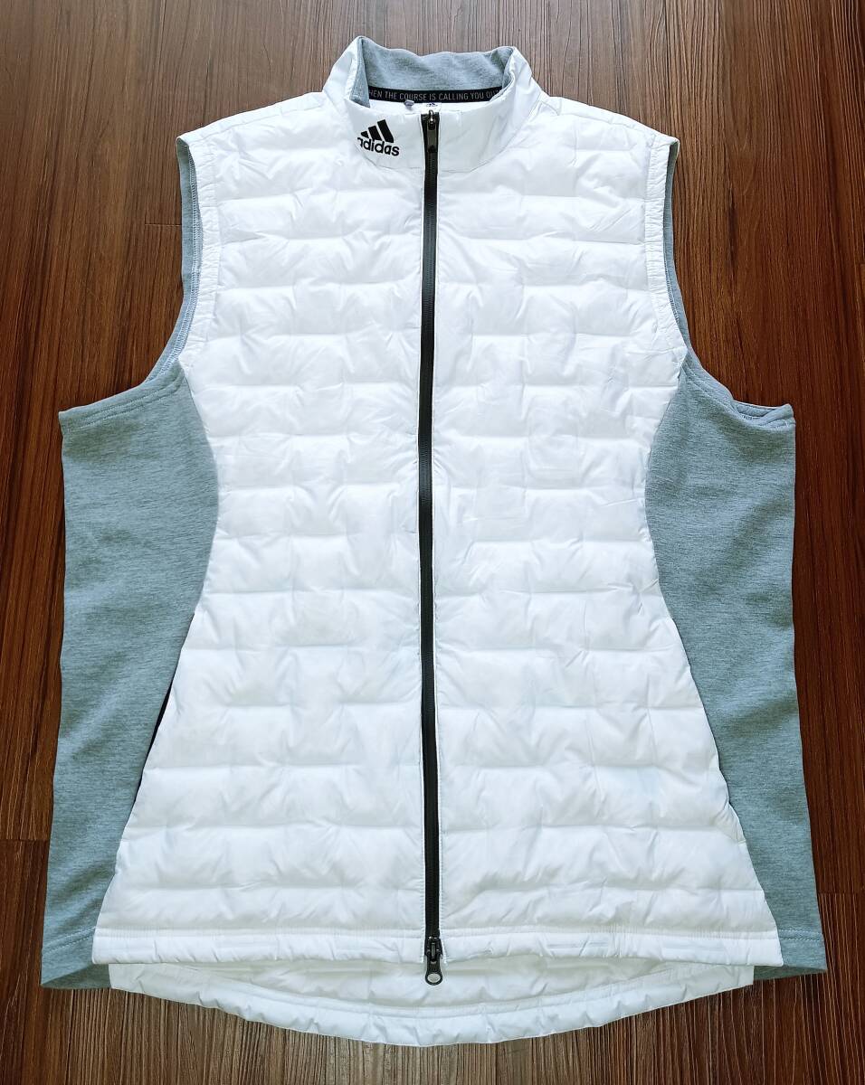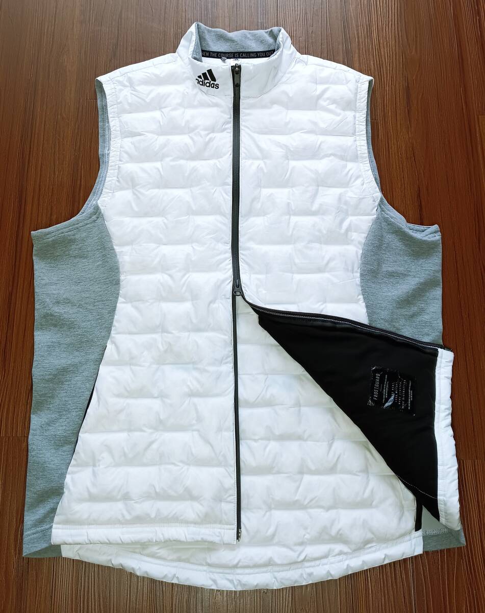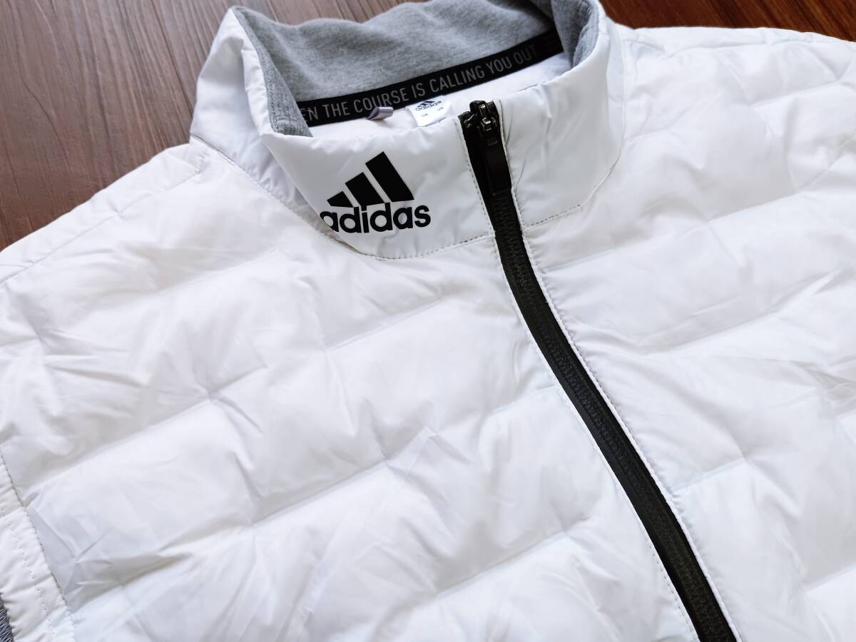 「美品!高品質!価格16500円 adidas アディダス 薄手 超軽量 ダウン切替 ストレッチ ジップアップ ライトダウンベスト(白XL相当)」