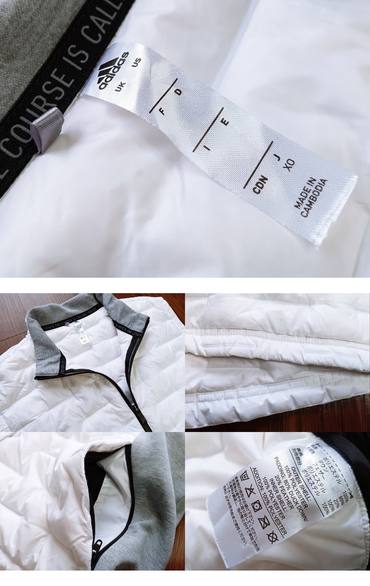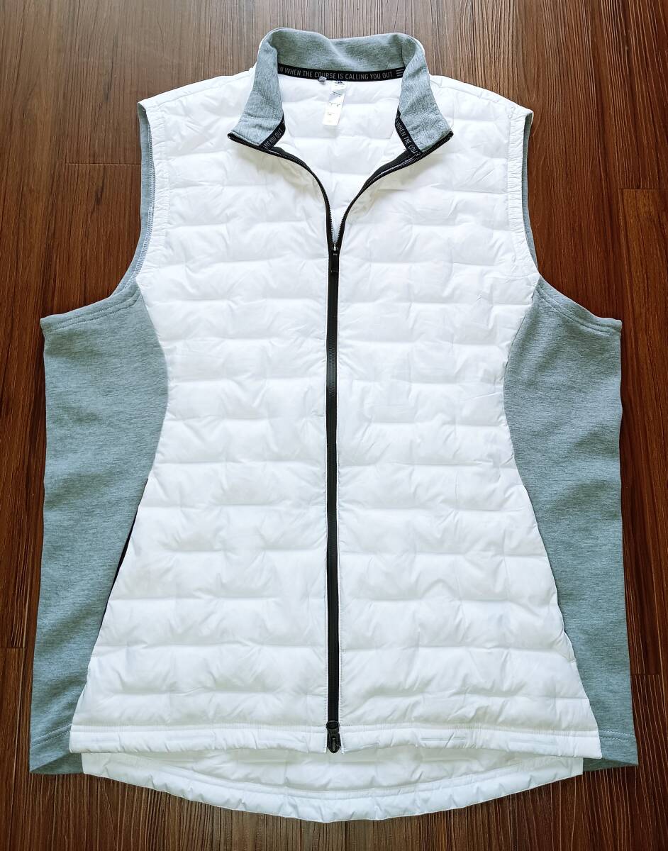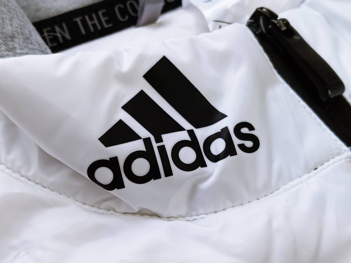「美品!高品質!価格16500円 adidas アディダス 薄手 超軽量 ダウン切替 ストレッチ ジップアップ ライトダウンベスト(白XL相当)」