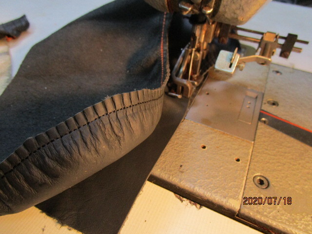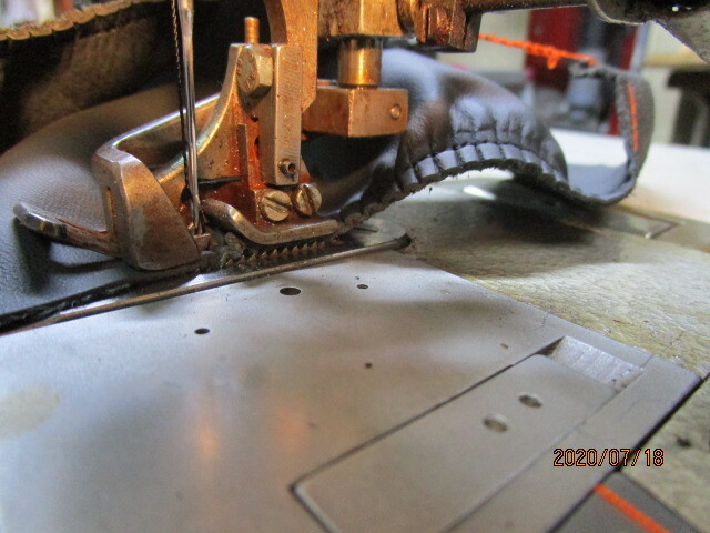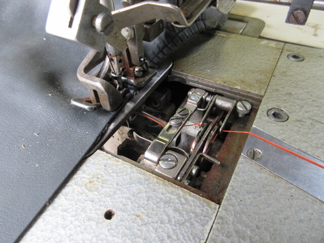 自動車シートの皮のギャザー縫い出来るミシンです。型番ドイツ製アドラー370、1本針2重環縫い