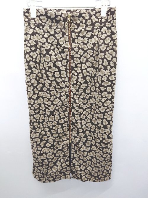 ◇ SLOBE citron.スローブシトロン. 総柄 ベロア調 膝下丈 ナロー スカート サイズ表記なし ベージュ系 レディース P