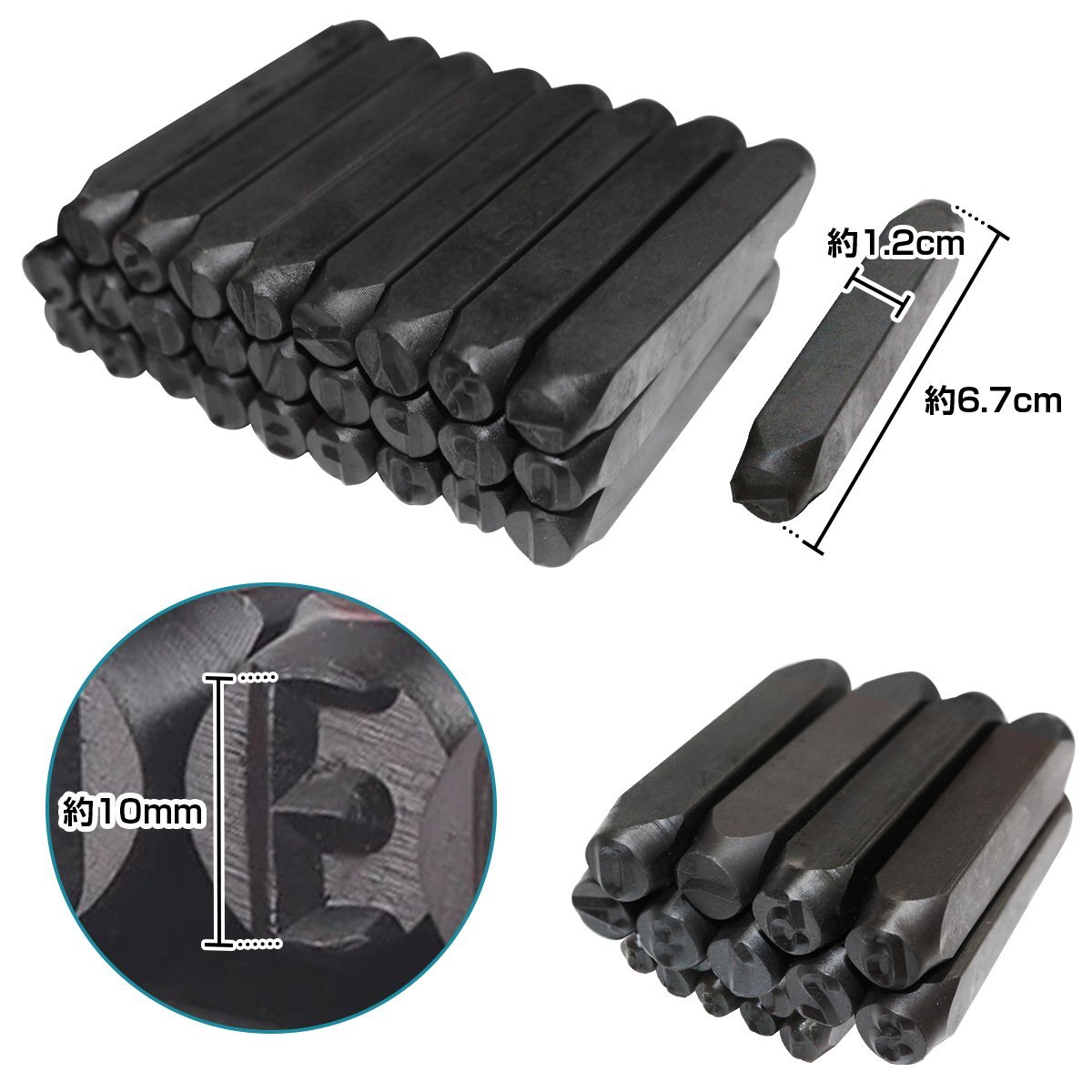 【送料無料】[ 10mm ] 数字+アルファベット 打刻印セット 36本 打刻 ポンチ レザークラフト アルミ 真鍮 銅 金属 DIY 英字 ナンバー 36pcs