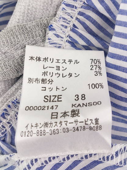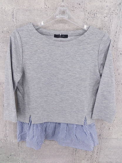 ◇ BARNEYS NEWYORK バーニーズニューヨーク レイヤード調 七分袖 カットソー 38 グレー ホワイト ブルー レディース ◆