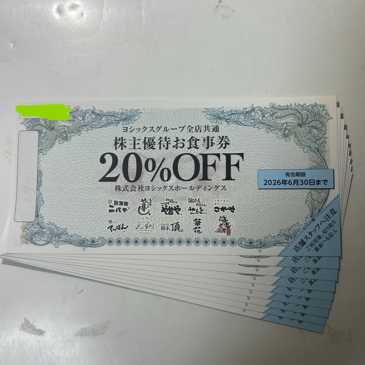 ヨシックス 株主優待券 20%OFF券 9枚分です。
