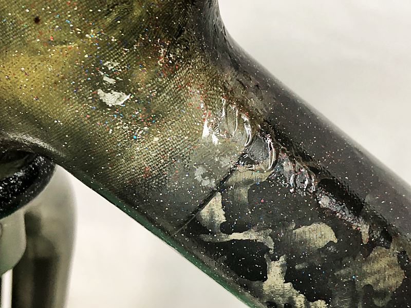 フォーク、フレーム各部にキズ、スレ、ハゲ等の傷み、クリアの劣化があります。