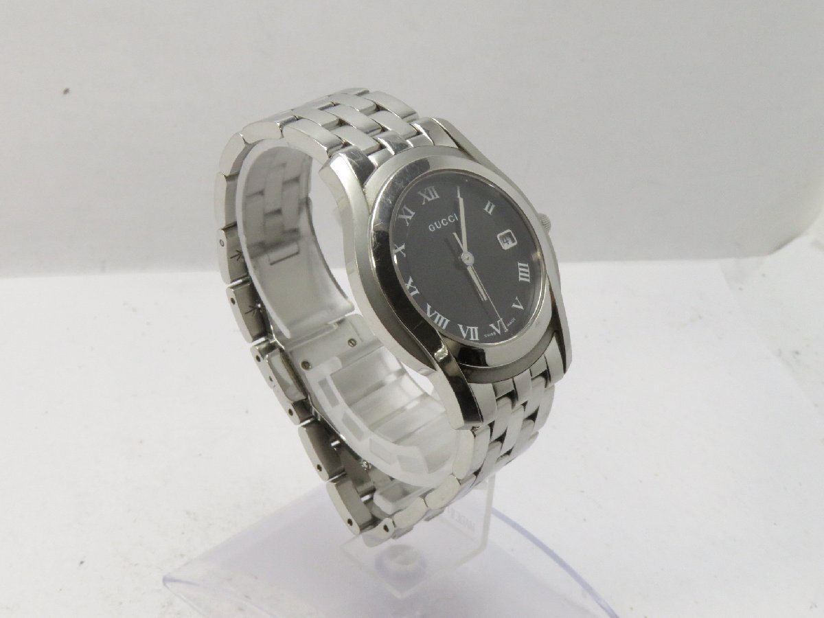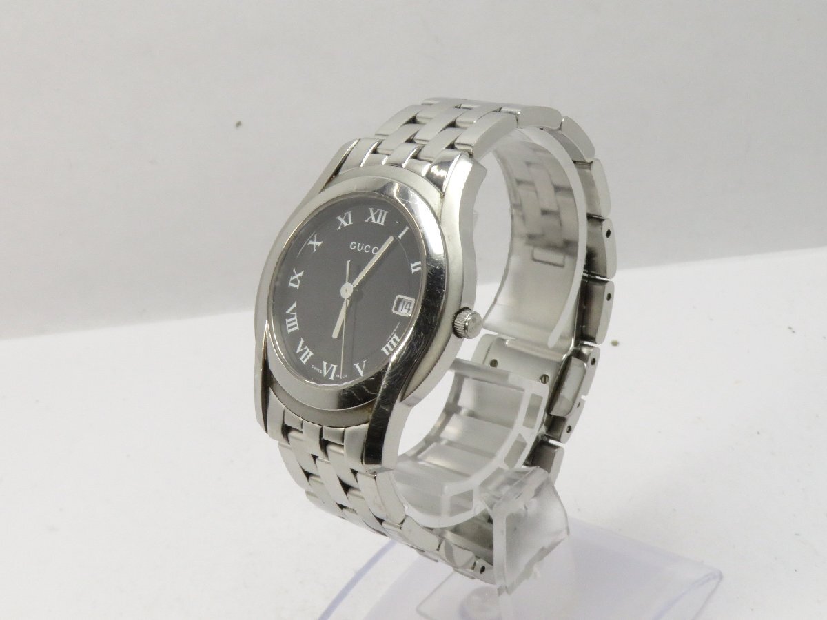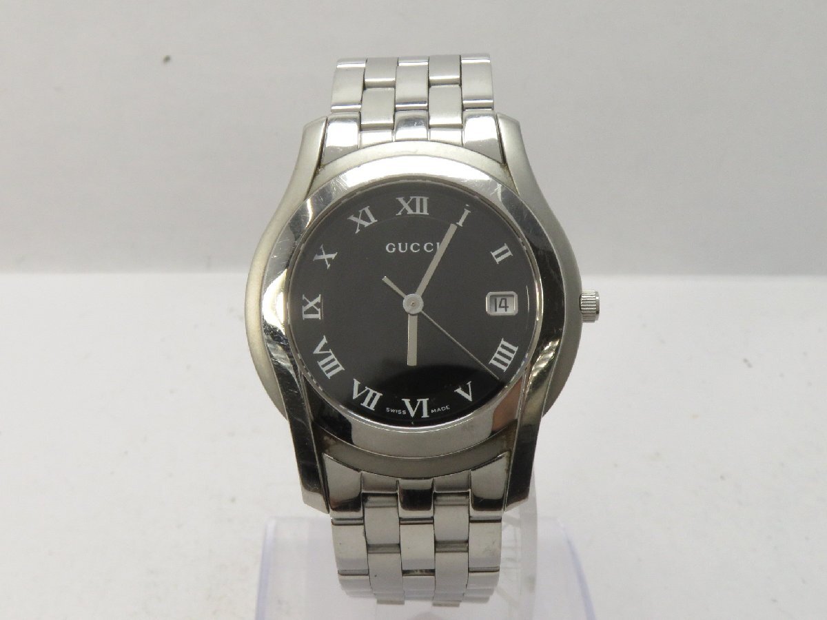 1円開始◆稼働◆ グッチ 5500M ブラック クオーツ ユニセックス 腕時計 AD05102