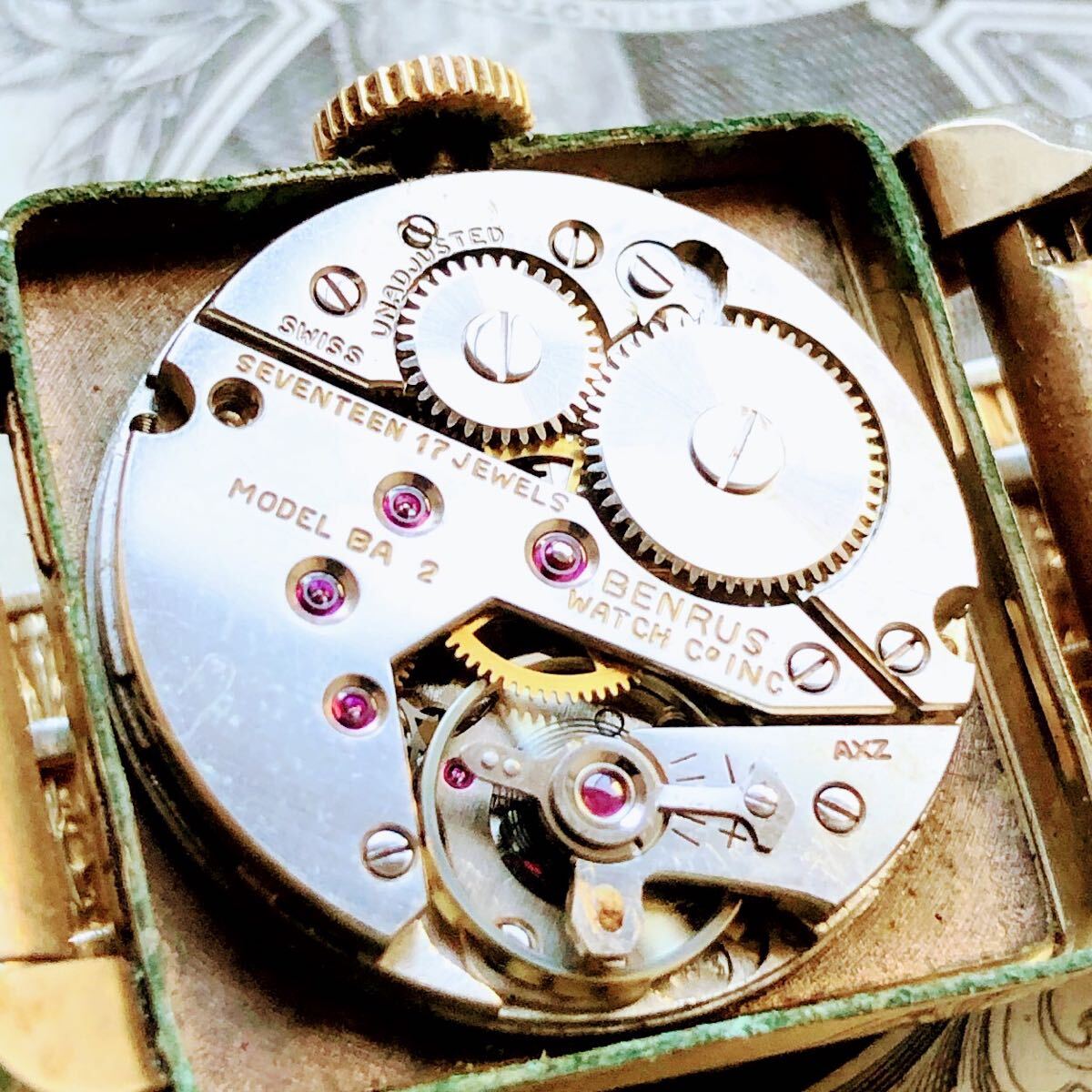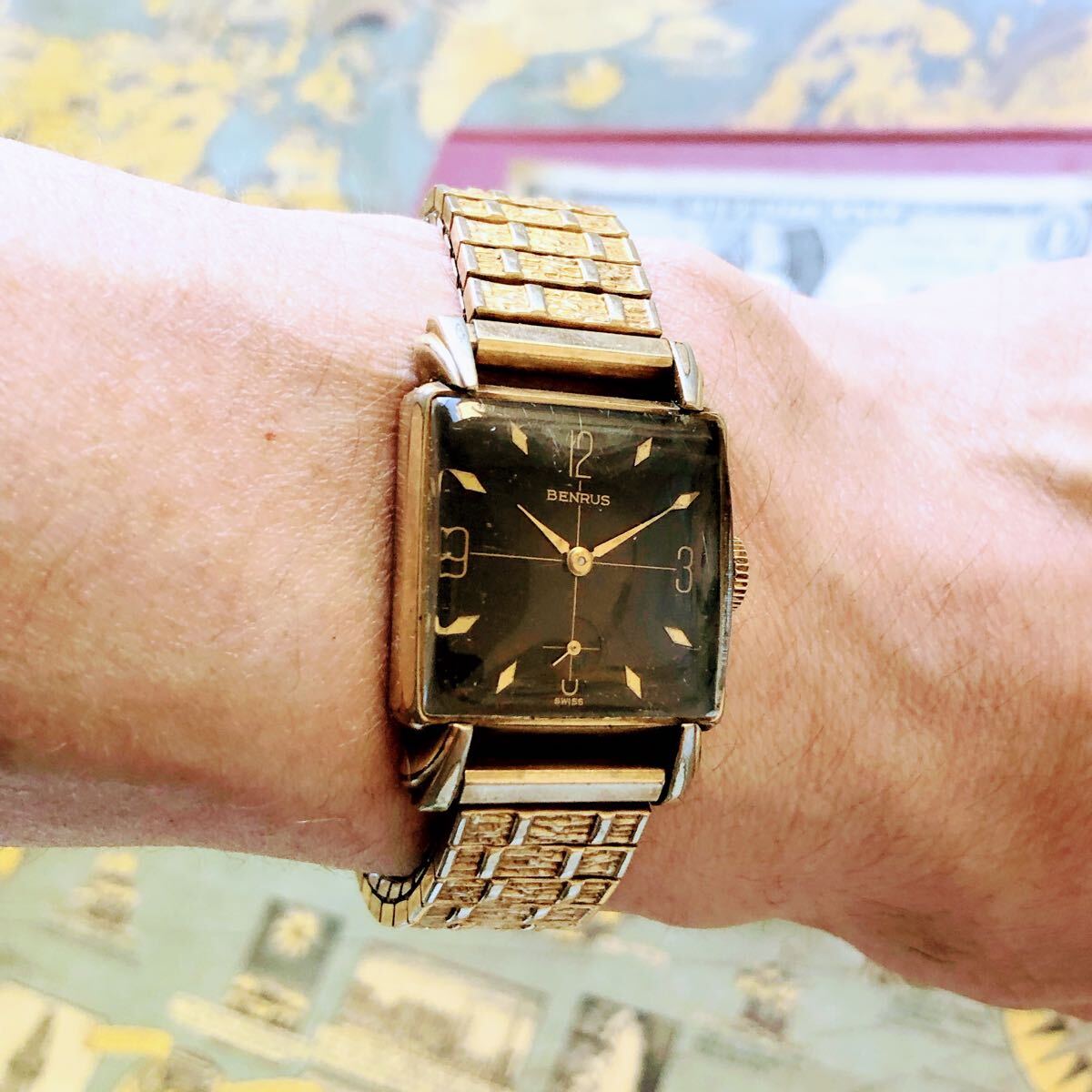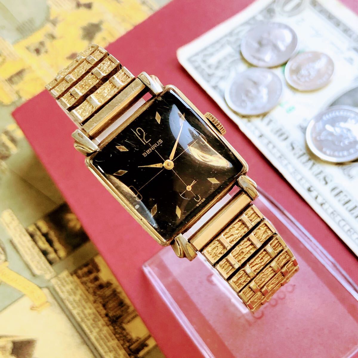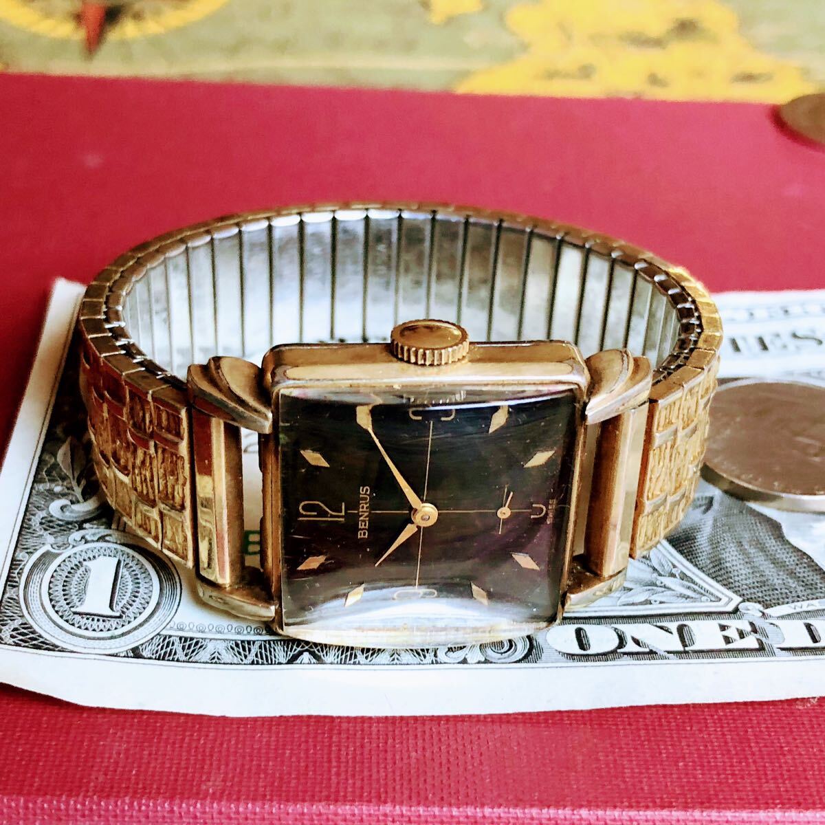 #3833【シックでお洒落】メンズ 腕時計 ベンラス 動作品 手巻き BENRUS 金メッキ アンティーク ヴィンテージ 17石 機械式 GOLD-P 1950年代