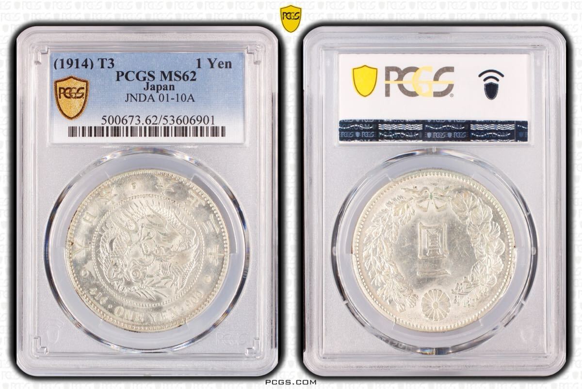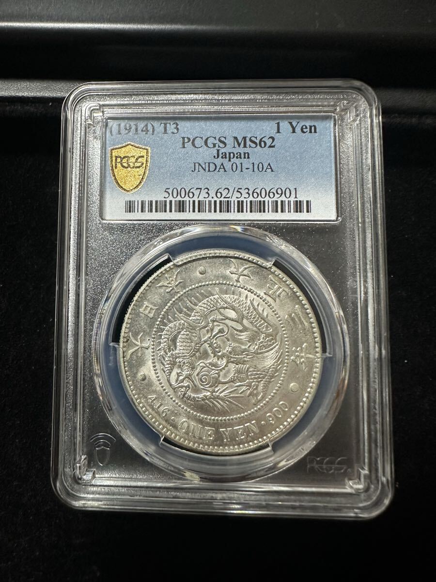 【20】新1円銀貨 大正3年 PCGS MS62 一圓銀貨 貿易銀 貨幣 古銭 硬貨 アンティーク 日本銀貨 スラブコイン NGC 鑑定済み