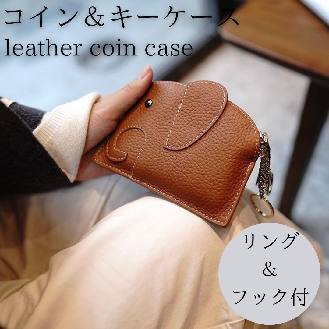 商品名:ゾウモチーフ レザー調 コイン&キーケース