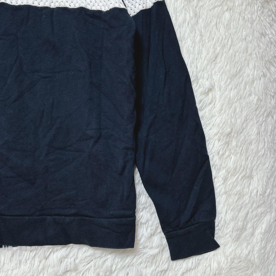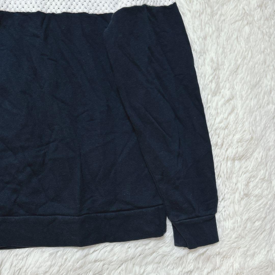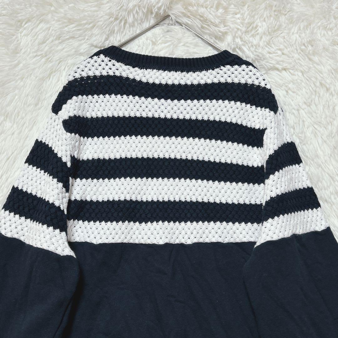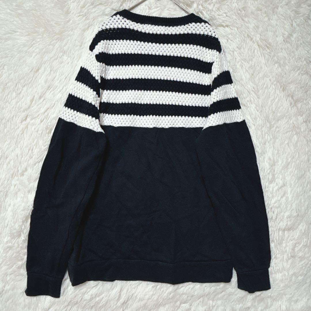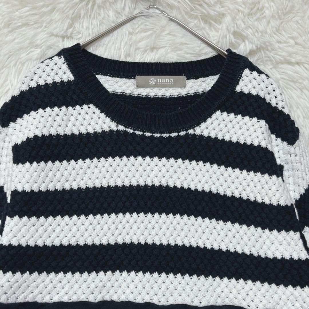 ナノユニバース ニット トレーナー ドッキング M ネイビー 白 ストレッチ C69F39