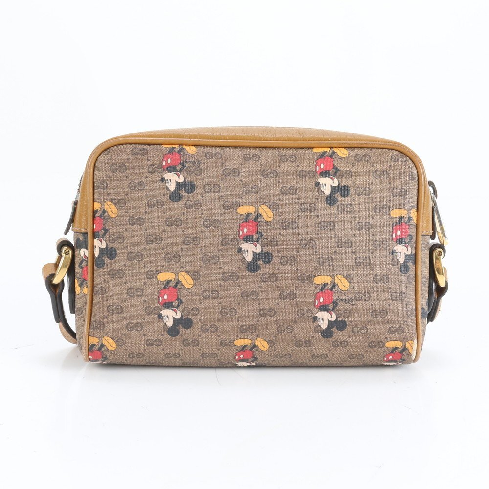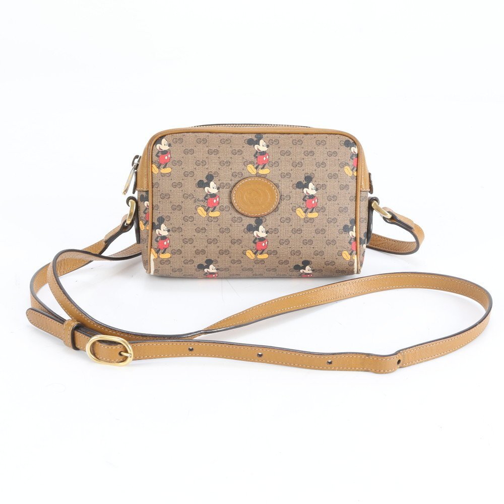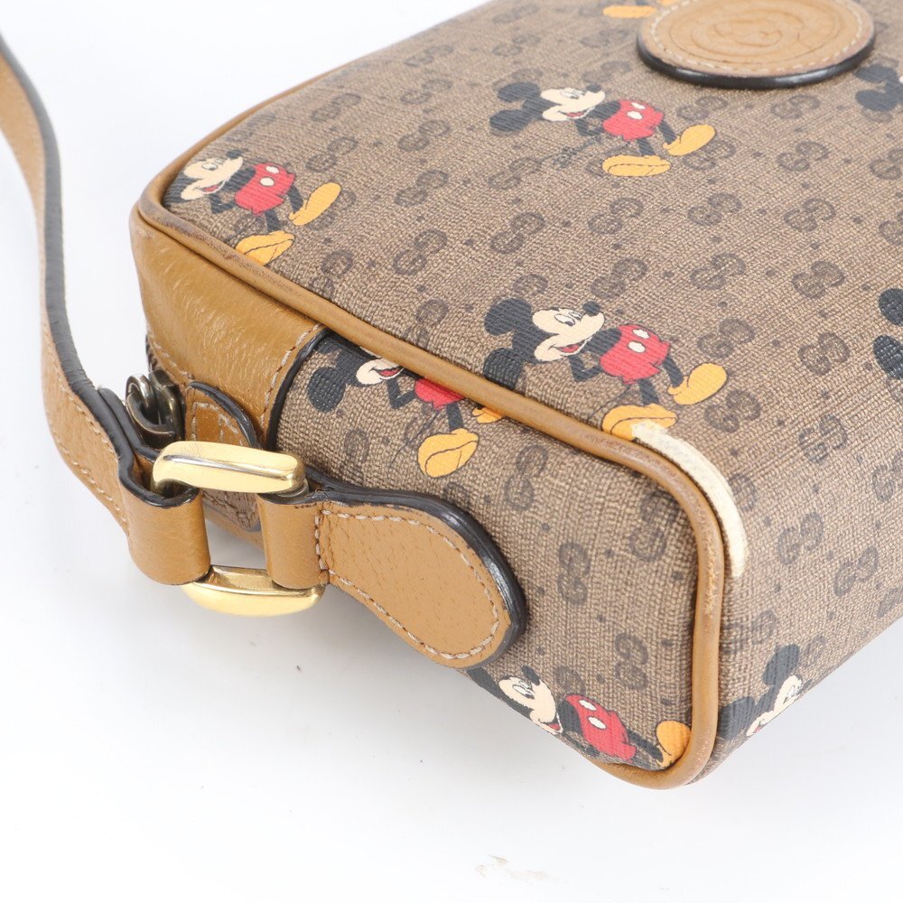 1円■美品■グッチ■ディズニー コラボ マイクロGG ミッキー 602536 レザー ショルダーバッグ 斜め掛け ブラウン レディース EUM CY12-8