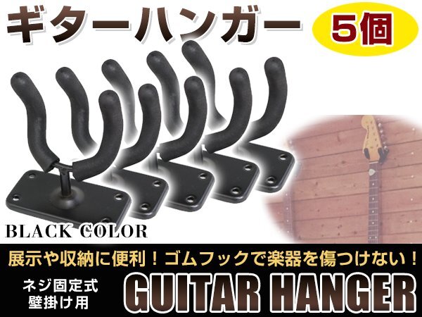 壁掛けタイプ! 頑丈です! ギター ハンガー フック スタンド ディスプレイ ネジ 取付け ベース・エレキ・アコギ・ガットギター可!5個