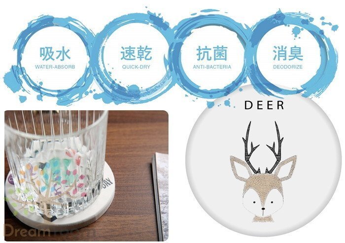 056-04 吸水力抜群 速乾性 珪藻土 かわいい コースター 丸 シカ DEER 速乾 水滴を素早く吸収☆