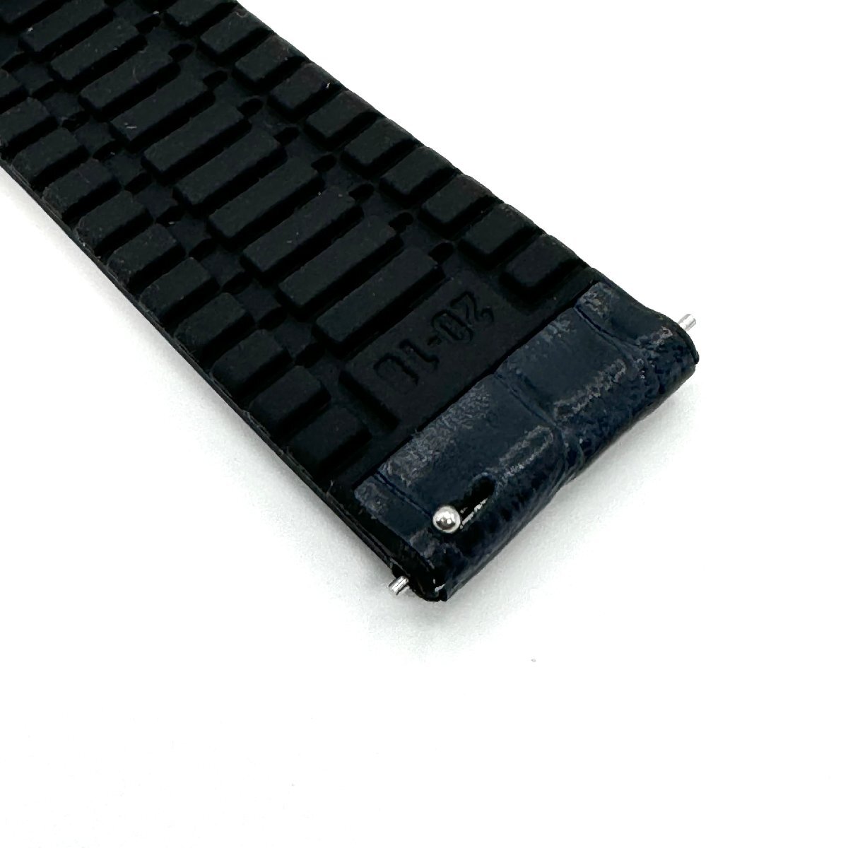裏側がラバー仕様で汗水をしみ込まない、耐久性の高さが特徴のバンドです。