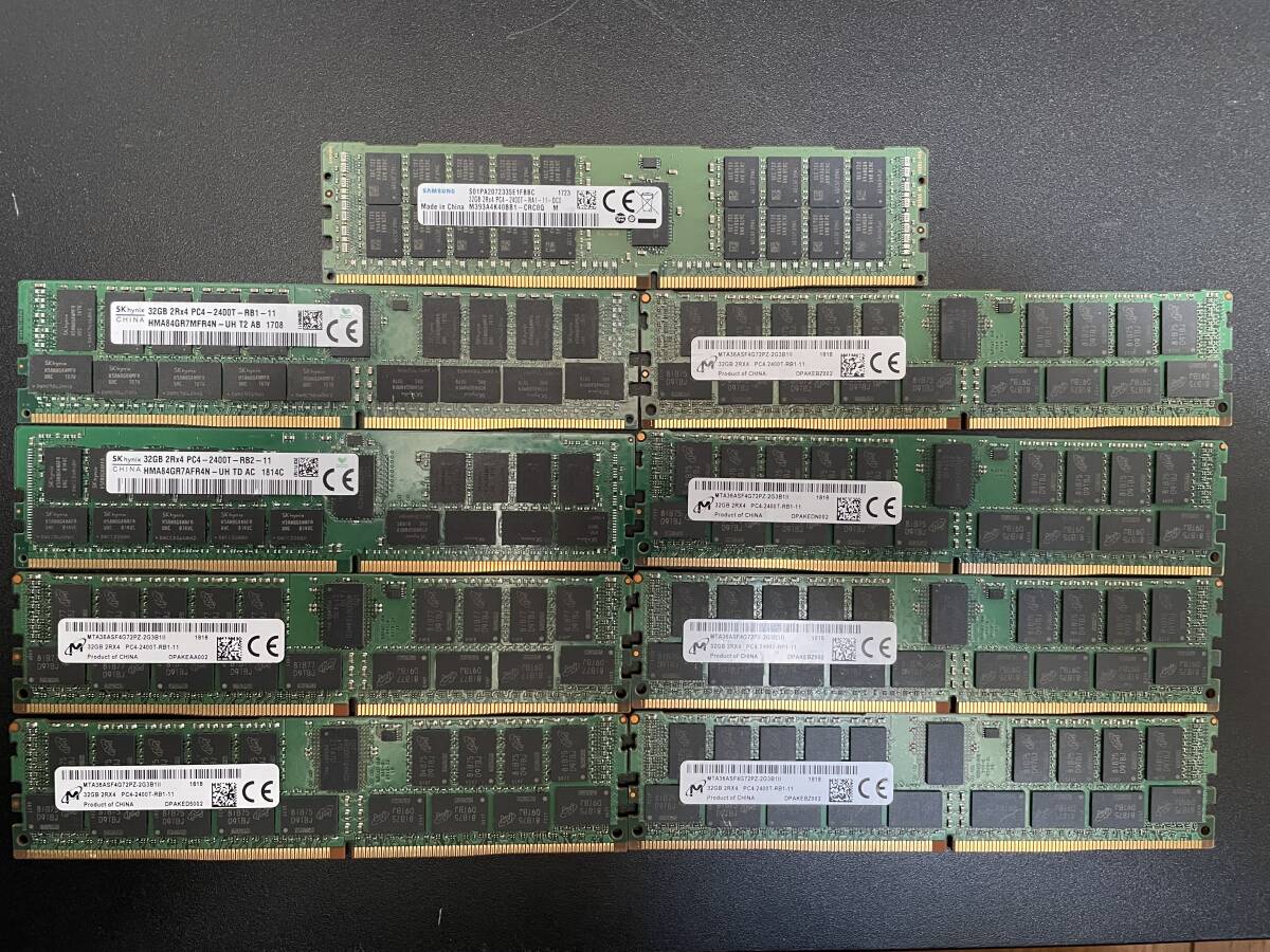 メモリ サーバーパソコン用 DDR4-2400 (PC4-19200) ECC Registered 32GBx9枚 合計288GB 起動確認済です