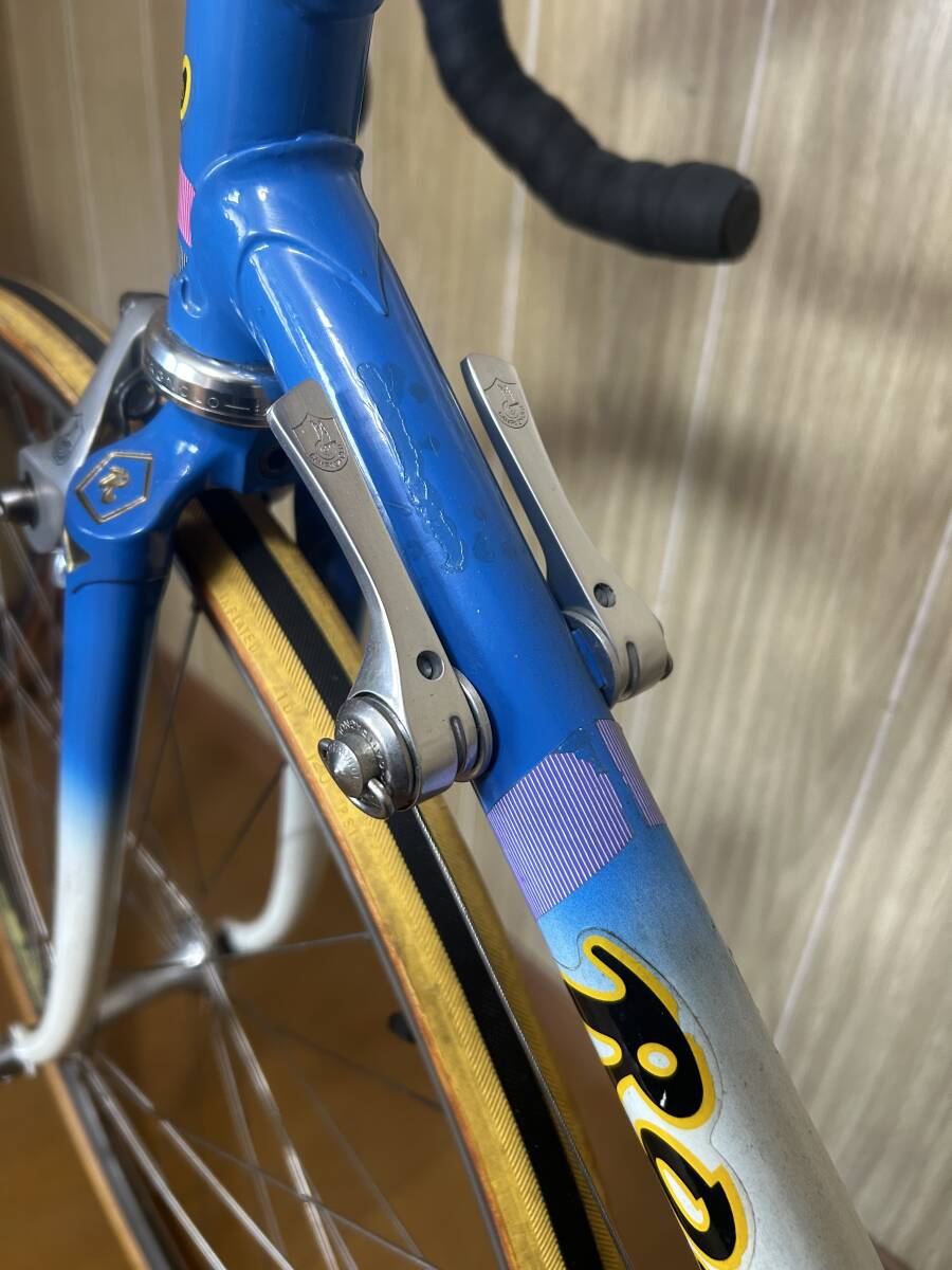 佐川ラージ便240サイズの着払いになります。昼間であれば、大阪市今里付近での手渡しにも対応致します。チューブラー仕様。フレームに、小さな傷やタッチアップがありますが、全体的には綺麗な状態を保っていると思います。コレクションにも是非!>タイヤは古いものですので、乗る方は交換してください。 発送時はクランク、シートポスト、サドル、ホイール、ハンドル、ステム等をはずすことになりますので、組み立ての必要があります。ご注意下さい。ペダルと画像のスタンドは付属しませんのでご注意ください。譲渡証、販売証明書、領収書等の発行はできませんので、ご了承くださいませ。エンド幅100、126mm 13〜19tの7速ボスフリー。チューブラー仕様になります。