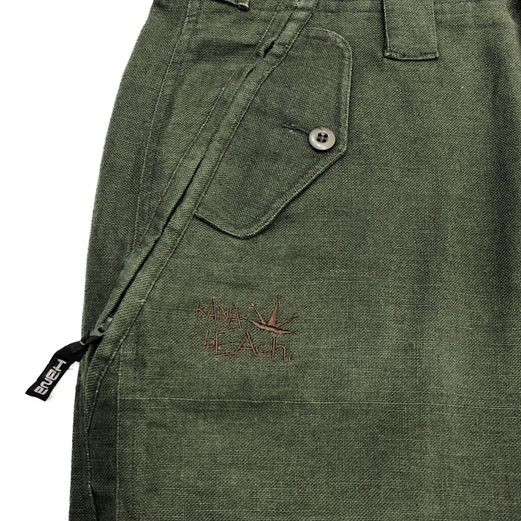 | 【商品管理番号】 U4962 【サイズ】 M 【実寸サイズ】 ウエスト:約84cm 股上:約34cm 股下:約75cm わたり幅:約33cm 裾幅:約26cm 【主な素材】 表地 : 麻・リネン 【色】 オリーブ 【仕様】 【状態】 | |||