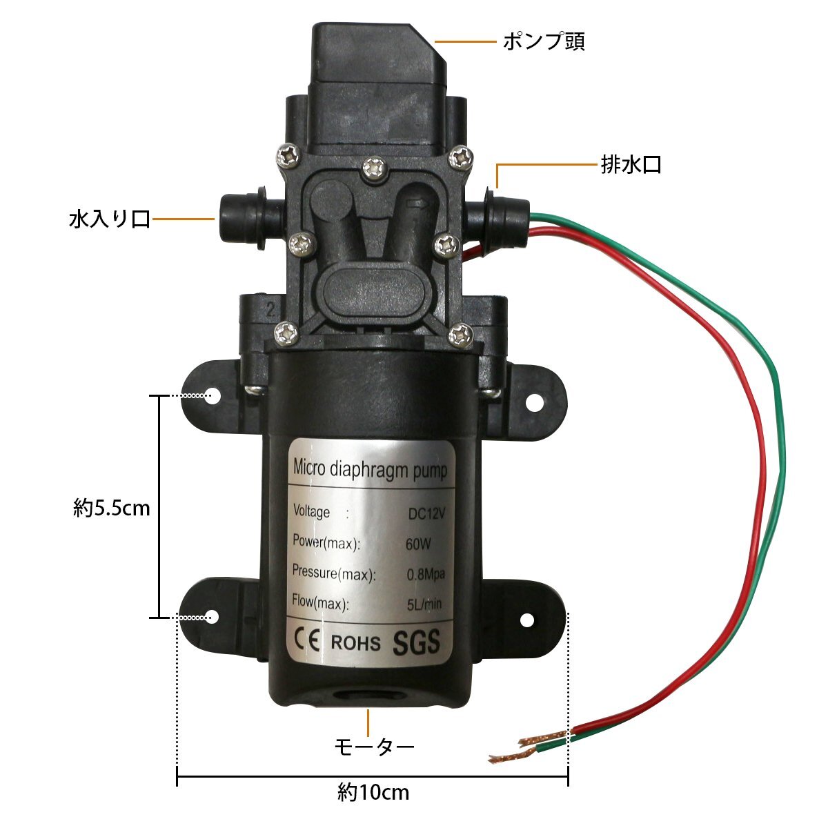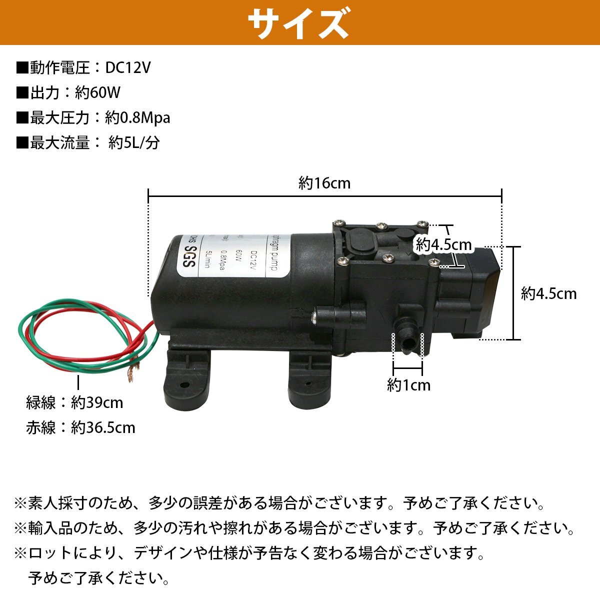 【新品即納】内径9mmホース対応 汎用 12V 60W 5L/分 ダイヤフラム 電動 ウォーターポンプ 小型 給水 ポンプ 洗車 アウトドア キッチンカ