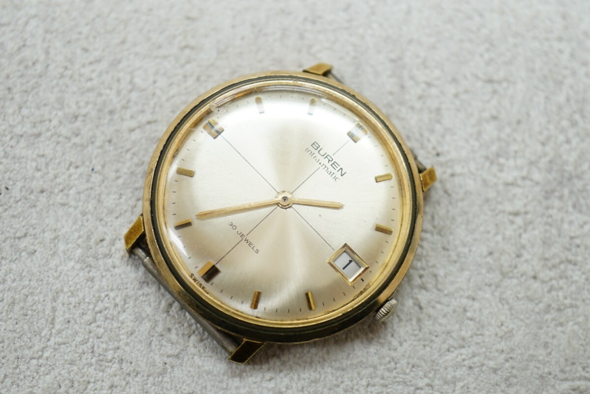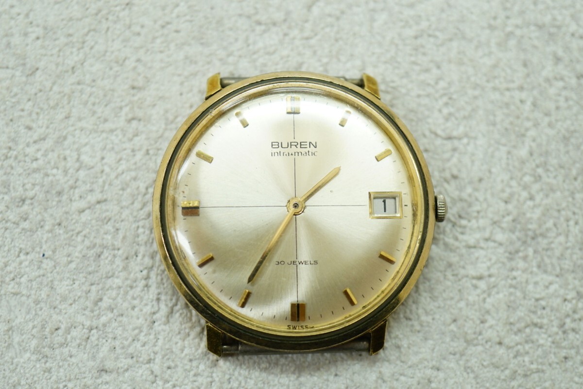 F924 BUREN/ビューレン SWISS intra matic 30石 自動巻き フェイス 文字盤 メンズ 腕時計 アクセサリー ヴィンテージ ブランド ジャンク品