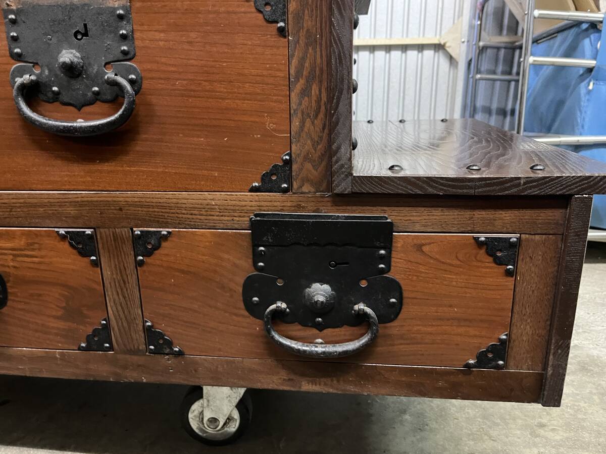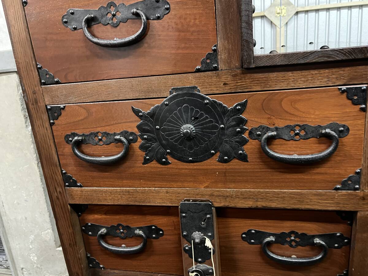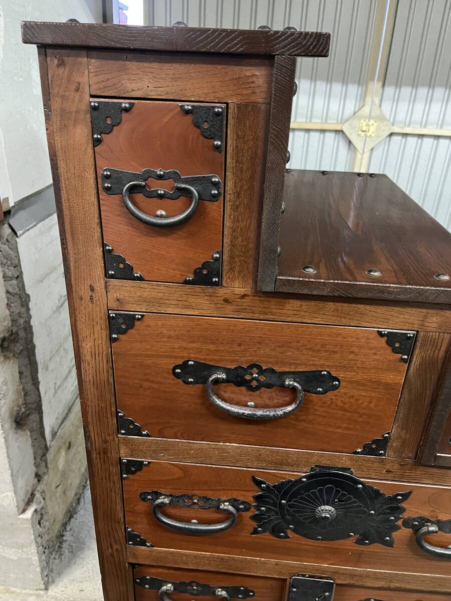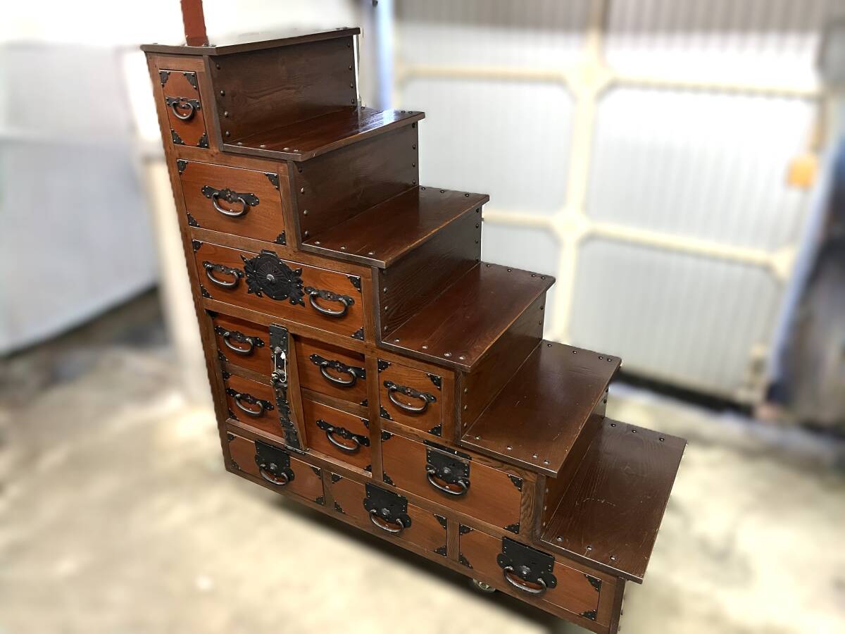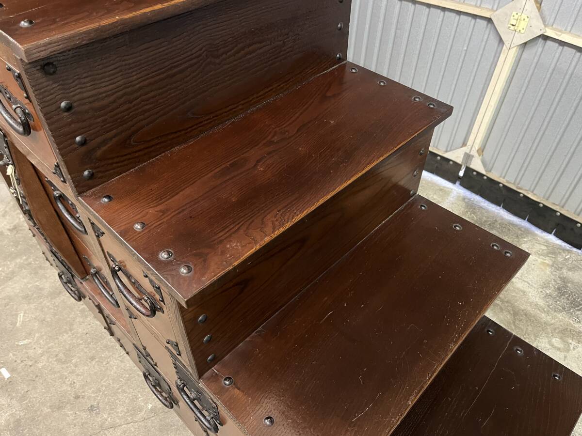 nt251126-001Z レトロ 木製 階段箪笥 引き出し 収納 アンティーク調 和風 インテリア 古風 小物入れ 階段チェスト 飾り棚 鍵付き 昭和