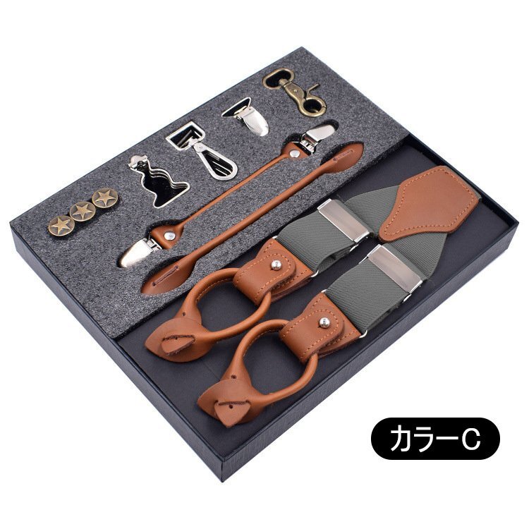 メンズサスペンダー コンビネーションセット6つのクリップ 35mm幅 Y形の調節可能な弾性のある男性のサスペンダー ☆カラーC
