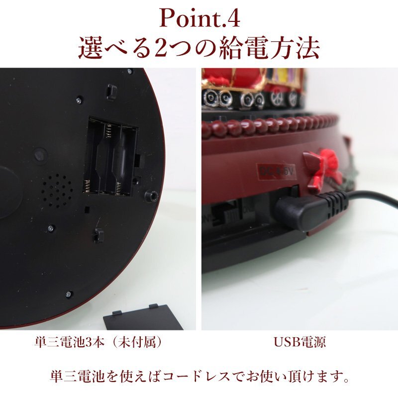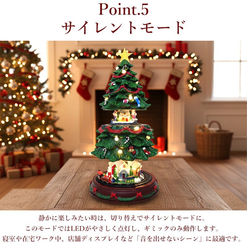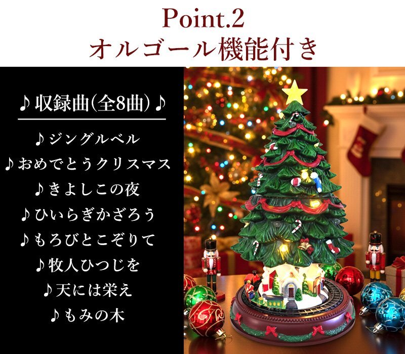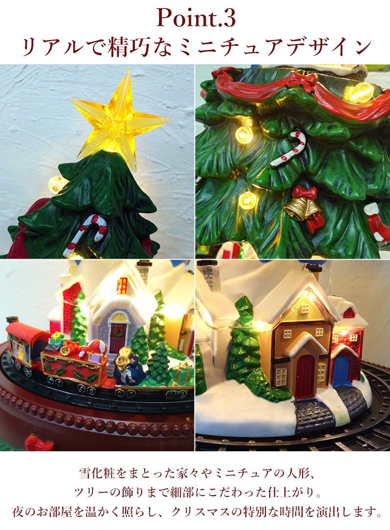 ![]() 動いて光る!音楽付き「クリスマスツリービレッジ」オブジェ まるで夢の中のクリスマスシーンを切り取ったような、動くミニチュアツリーオブジェ。 電源を入れると、ツリー全体に優しいLEDライトが灯り、心弾むクリスマスソングが流れます。 下部では列車が円を描くように走行し、上部のツリーがゆっくりと上下に動くと、中から小さな街並みが現れる幻想的なギミック付き。 光・音・動きがひとつになり、まるで本物のクリスマスワールドを覗いているような臨場感を楽しめます。 雪化粧をまとった家々やミニチュアの人形、ツリーの飾りまで細部にこだわった仕上がり。 上部の星やオーナメントが光を受けて輝き、見る角度によって異なる表情を見せます。 夜のお部屋を温かく照らし、クリスマスの特別な時間を演出します。 クリスマスの飾りつけや、インテリアのアクセントとしてもおすすめ。 眺めるたびに楽しい気分にさせてくれる、遊び心いっぱいのオブジェです。 クリスマスのインテリアや冬のディスプレイにぴったりな、心弾むミニチュアオブジェです。 給電方法は2つ、付属のUSBコードで使用する他、 単三電池3本でコードレスとしての使用も可能! 精巧に作られている為、ライトを点灯させずに 単体でオブジェとして使用しても存在感抜群です! ギフトなどにもおすすめです! ●動作パターン● ・未点灯 ・LED点灯(音楽なし) ・LED点灯(音楽あり) ※乾電池、USB出力用のアダプターは付属しておりません。 点灯時の様子は動画でご覧くださいませ。 動画はこちら ↓↓↓↓↓↓↓↓↓↓↓↓↓ こちらをクリック! 【商品詳細】 サイズ(約): 横幅23cm×高さ46~50cm×奥行23cm コード長さ(約):100cm 重量(約):1.6kg 素材:プラスチック・樹脂 【給電方法】 単三電池×3/USBコード |