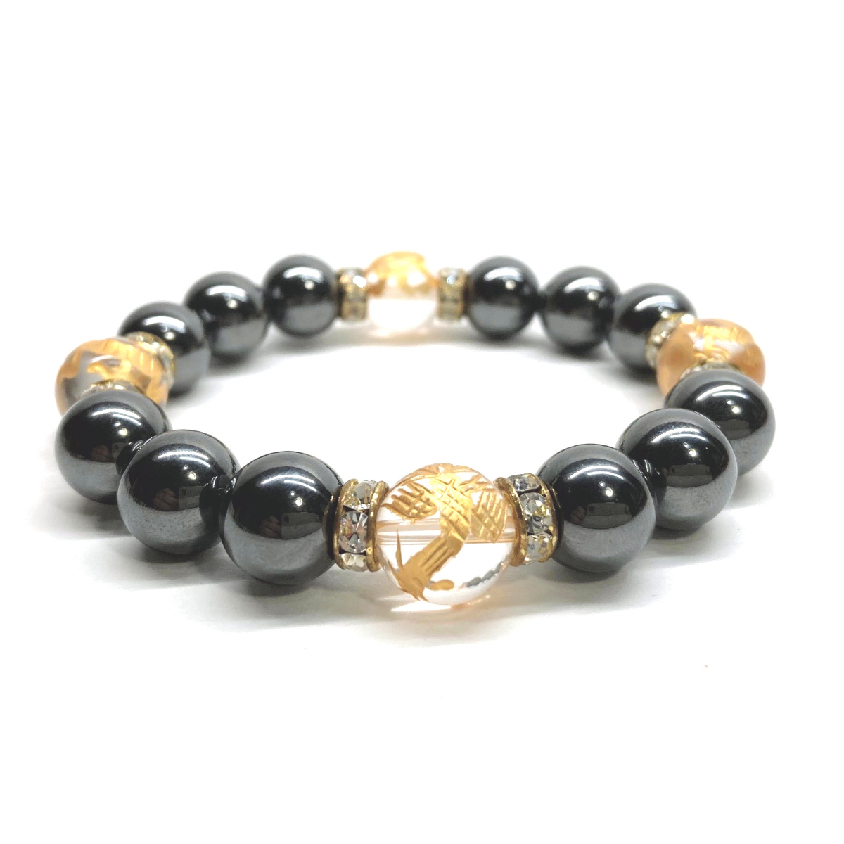こちらは、四神獣金彫水晶とヘマタイトを組み合わせたパワーストーンブレスレットです。四神獣は、中国の伝説で4つの方向(東西南北)を守護する神聖な神。四神獣、厄災から身を守り、多くの運気を呼び込むと言われております。石大きさは程よくインパクトのある12mm玉で内周 約17cmです。 数に限りがございますので気になる方はお早めにどうぞ。