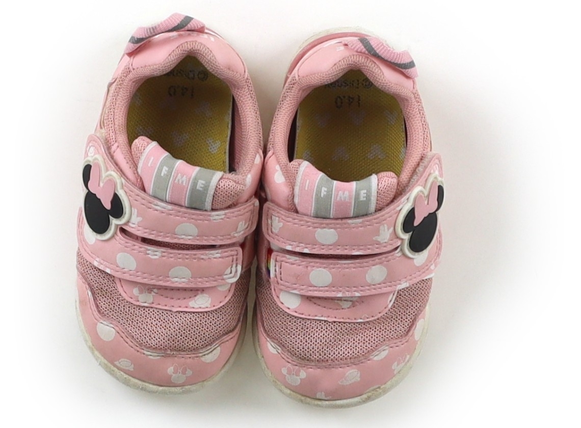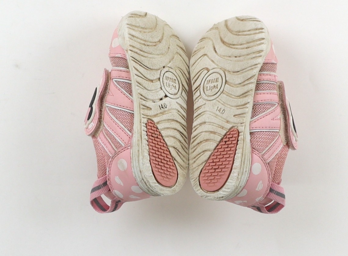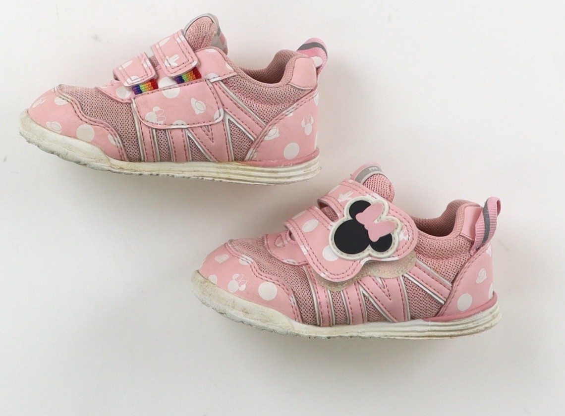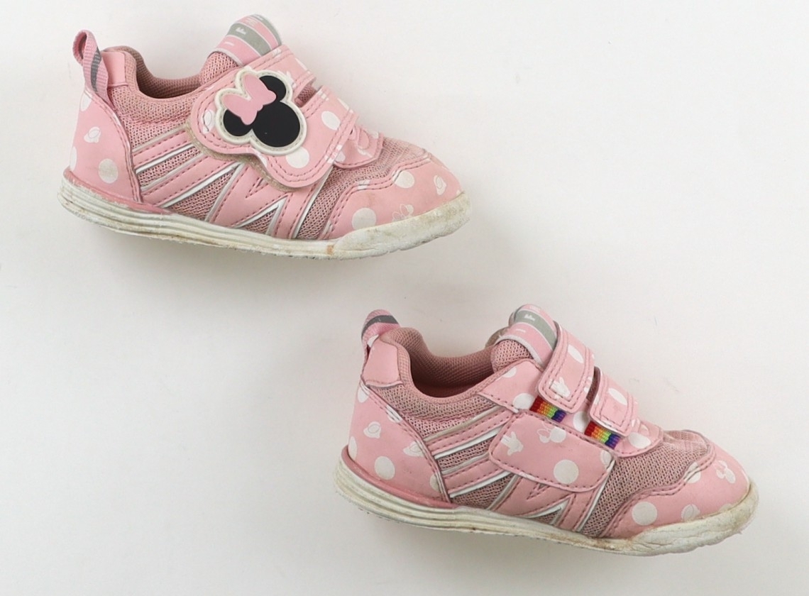 Disneyコラボ商品。実際のサイズ表記は14cm。マジックテープでの着脱。靴底に土汚れの跡があります。機能性に問題はなさそうです。まだお使いいただけます。