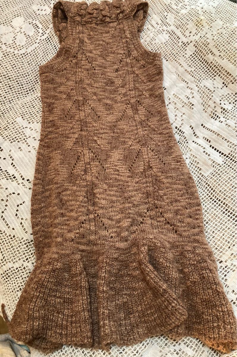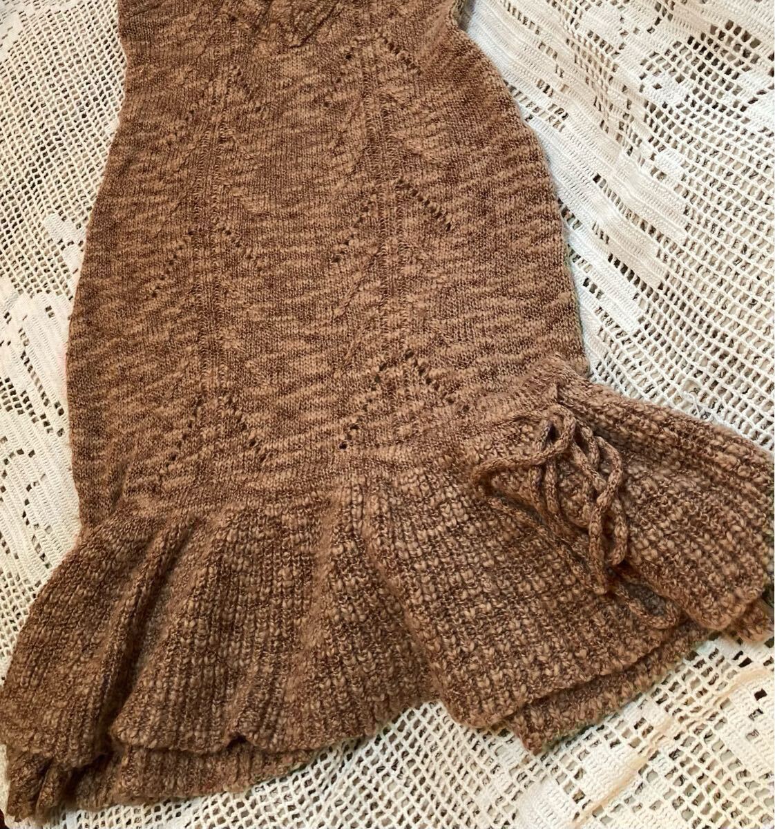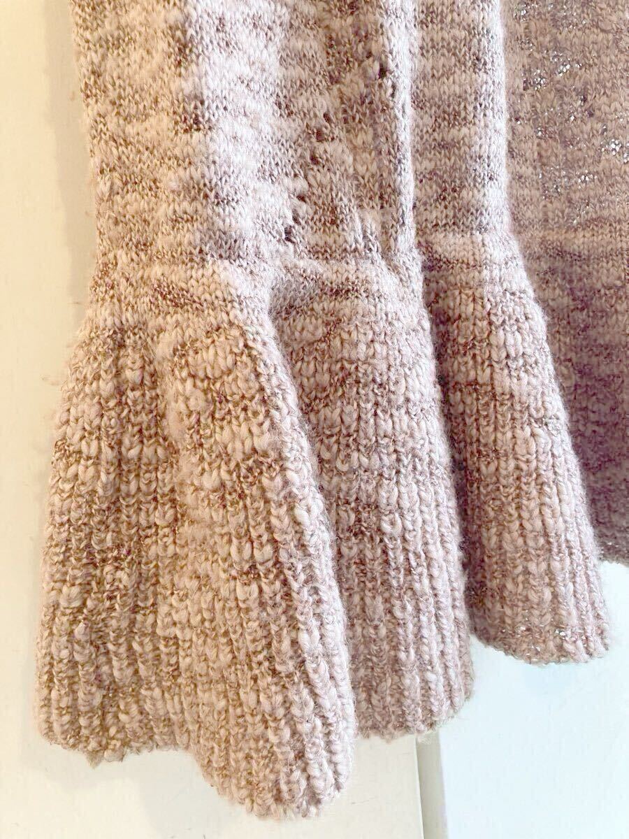射光によって色味の変化するメランジュカラーで、コンパクトショルダーから編み込ボアのマーメイドシルエットがとても可愛いです★