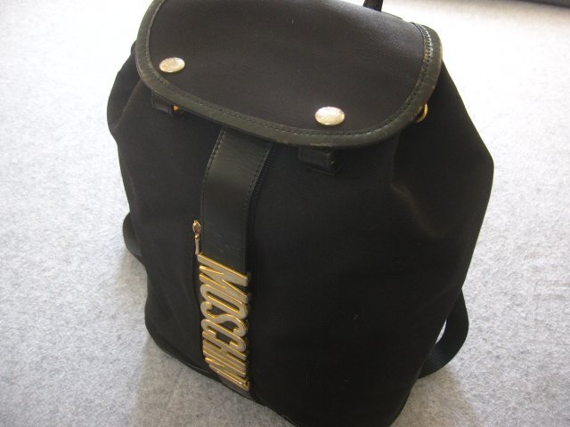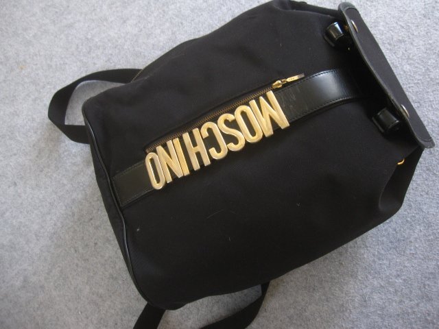 ビンテージ MOSCHINOモスキーノ リュックサック(W27H35D12cm)。非常に珍しい一品かと思います。ユーズドです、着用に差し支える大きなダメージはございません。ノークレームノーリターンノーキャンセルでお願いします。