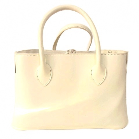 ナチュラルビューティーベーシック NATURAL BEAUTY BASIC レザー スクエア ハンドバッグ 自立可能 二層式 白 ホワイト レディース