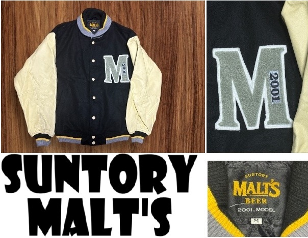 未使用2001年モデル★サントリーSUNTORY★MALT'S袖本革レザー★スタジアムジャンパー★ネイビー★M