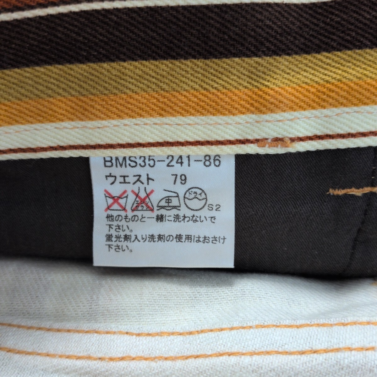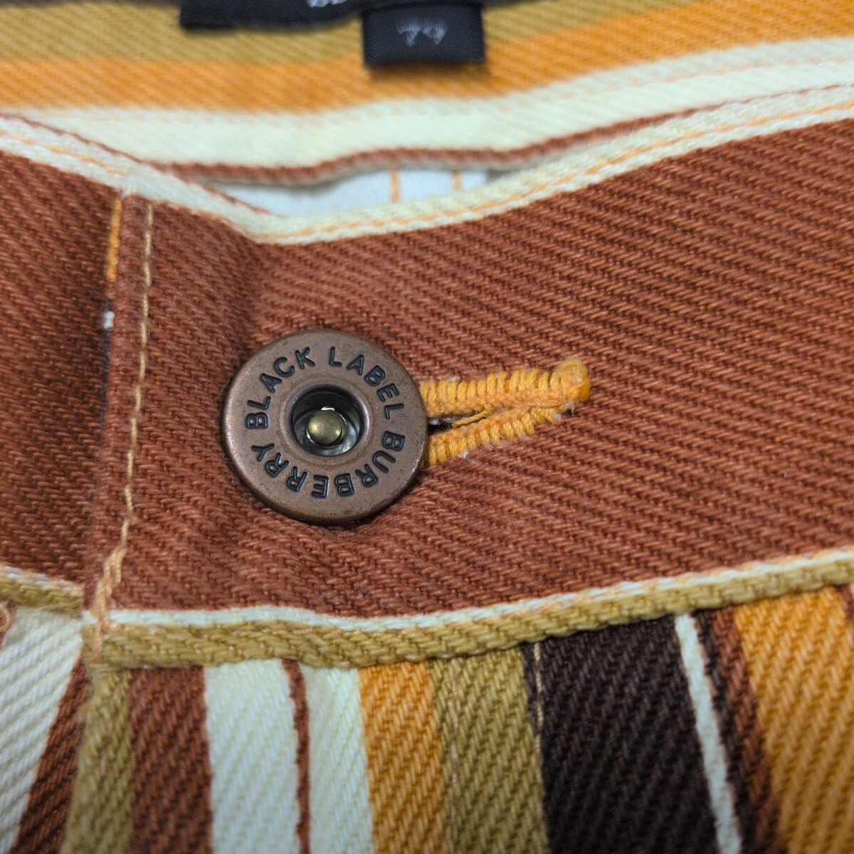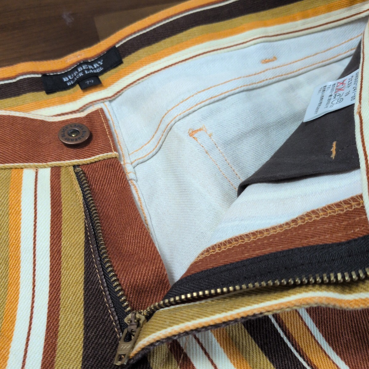 ★2015年にブランドとしての生産が終了したバーバリーブラックレーベルの中でも人気の高いデニムシリーズ。こちらのデニムは鮮やかな5カラーをストライプをランダムに配置したブラックレーベルらしい絶妙な配色によるマルチカラーストライプ。ジッパーフライ仕様のフロントはトップボタンにBURBERRY BLACKLABELの刻印があり細部に迄細かいブラックレーベルらしい仕上がりです。サイズ79の稀少な新品未使用の商品は現品限りの1 着となります。