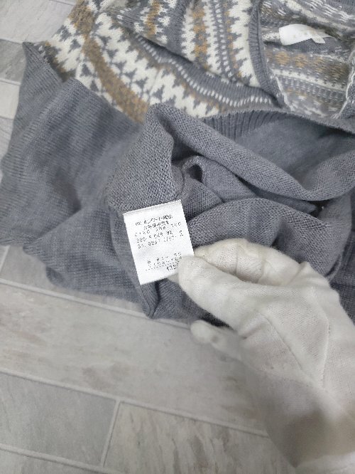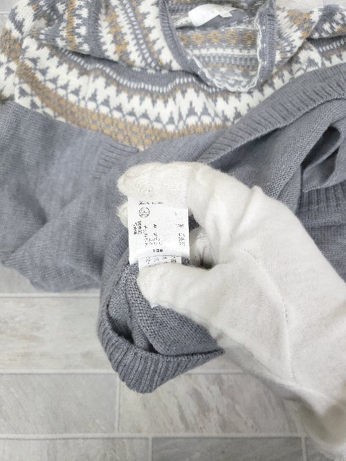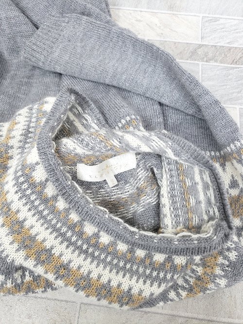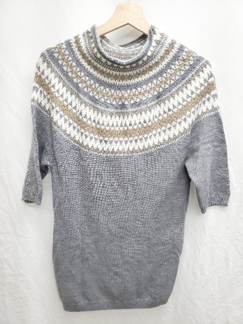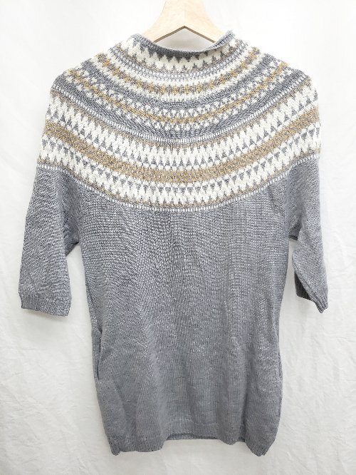 ◇ Θ KUMIKYOKU 組曲 ノルディック風 ニット 半袖 ミニワンピ チュニック サイズ2 グレー レディース P