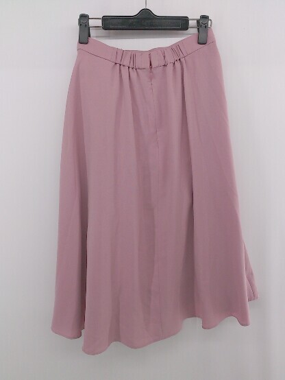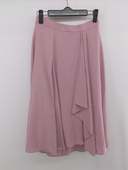 ◇ QUEENS COURT ウエストゴム バックジップ 裏地あり ミモレ フレア ラッフル スカート サイズ1 ピンク系 レディース E