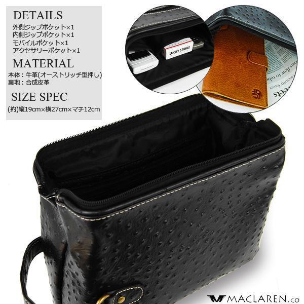【1点限り赤字超特価】【送料込み】【期間限定】【新品】【税込み】牛革オーストリッチ型押し 大容量収納モデル ダレス型セカンドバッグ