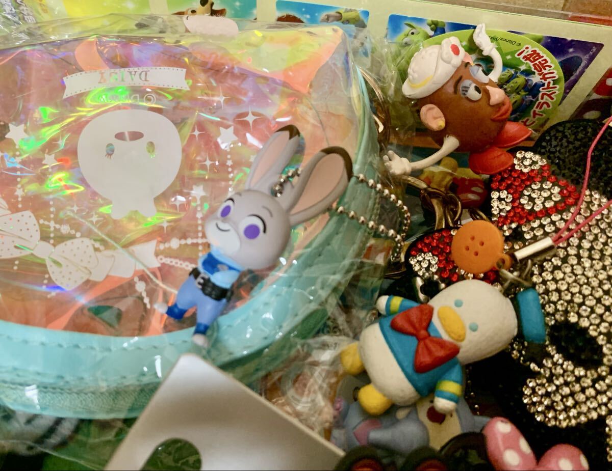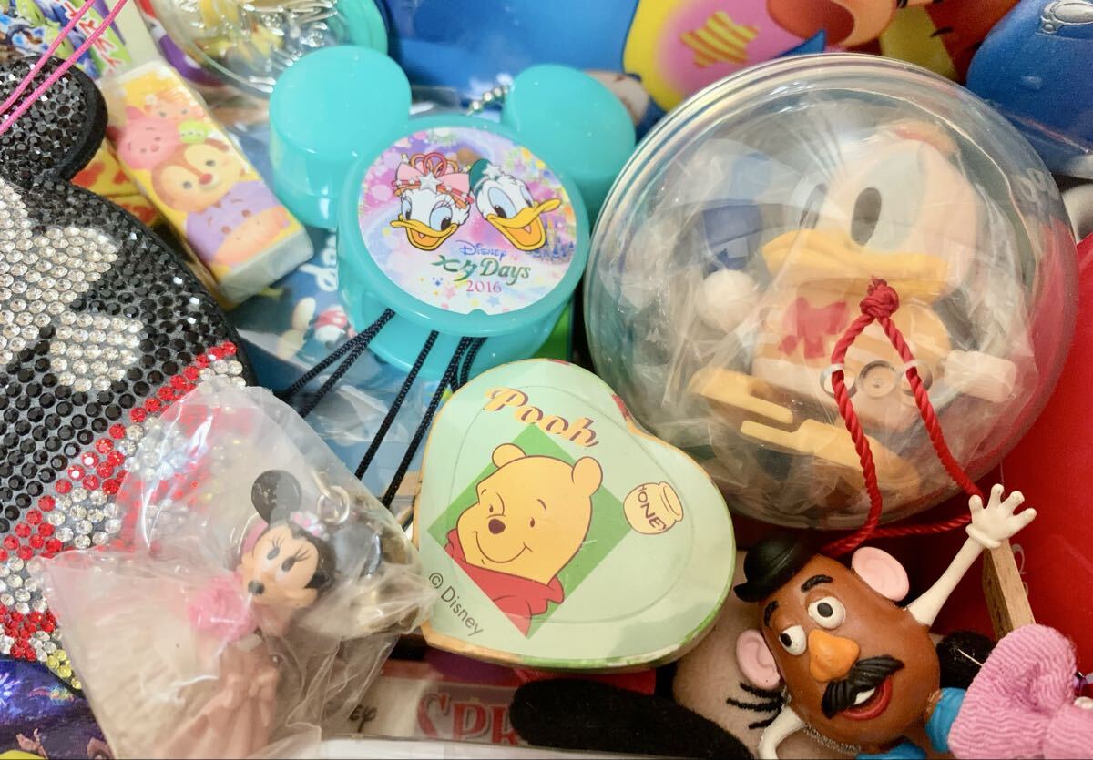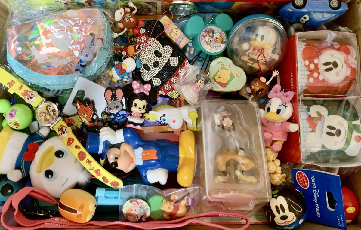写真の現状渡しになります。ジャンク扱いです。 100サイズの箱にディズニー関連グッズを大量に詰めて送ります。 写真は一部になります。 箱は使用済みのものを再利用しています。