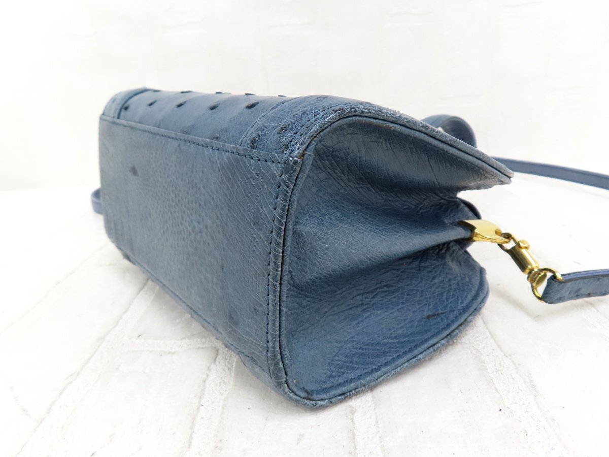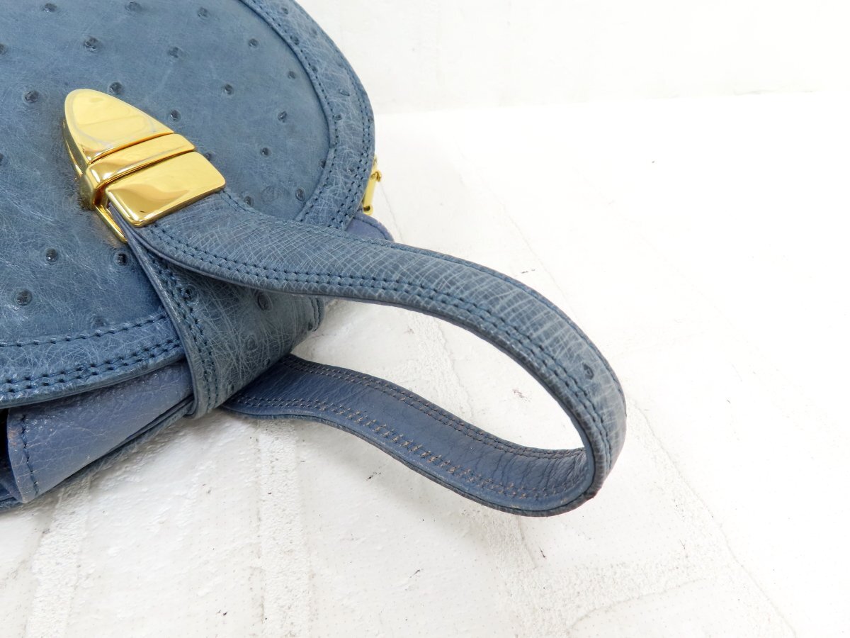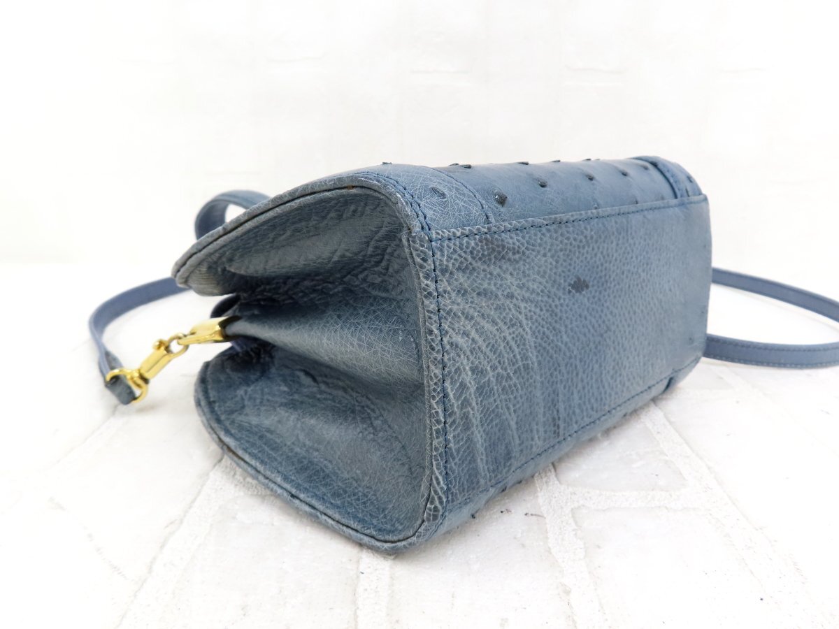 ◆美品◆FURDI ファルディ◆オーストリッチ 本 だちょう 革◆2way ハンド ショルダー バッグ◆くすみブルー ゴールド金具◆A14448