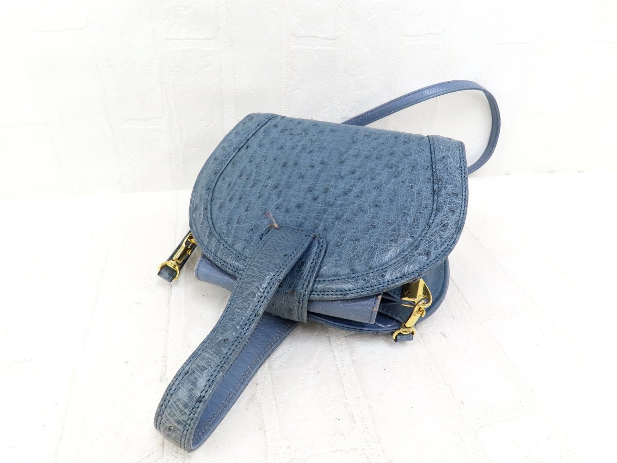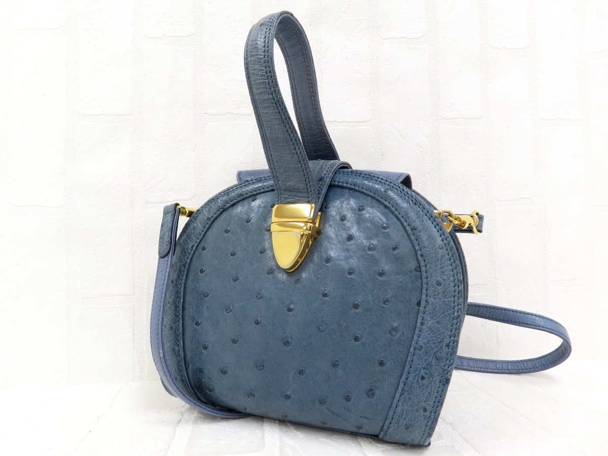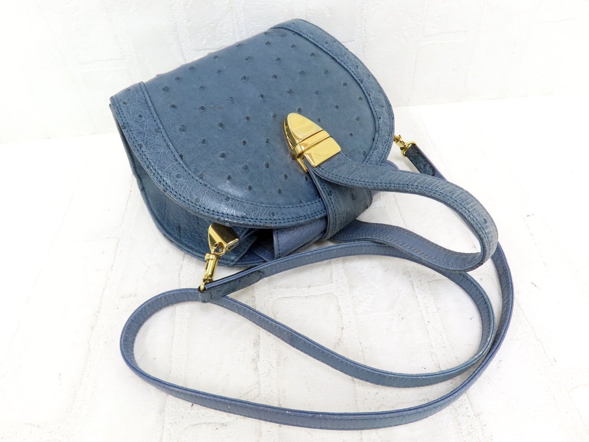 ◆美品◆FURDI ファルディ◆オーストリッチ 本 だちょう 革◆2way ハンド ショルダー バッグ◆くすみブルー ゴールド金具◆A14448