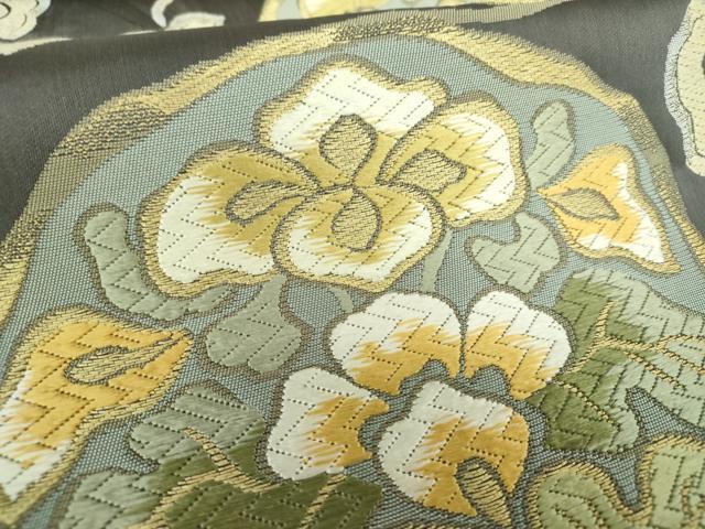 | 【正絹】 状態は接写画像のように 太鼓下部〜太鼓上部に薄い汚れ、柄止まりに薄い汚れ、スレがございますが その他特に目立ったシミ汚れなどもなく大変良い状態です。 最も豪華な織と言われる唐織の名門山口美術織物 こちらは先代山口成三郎氏から山口弘躬に引き継がれた御御帯です 大変加工の良い御唐織司・山口弘躬の逸品になります。 お安く出品致しますので、是非この機会にいかがでしょうか?