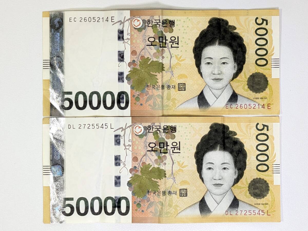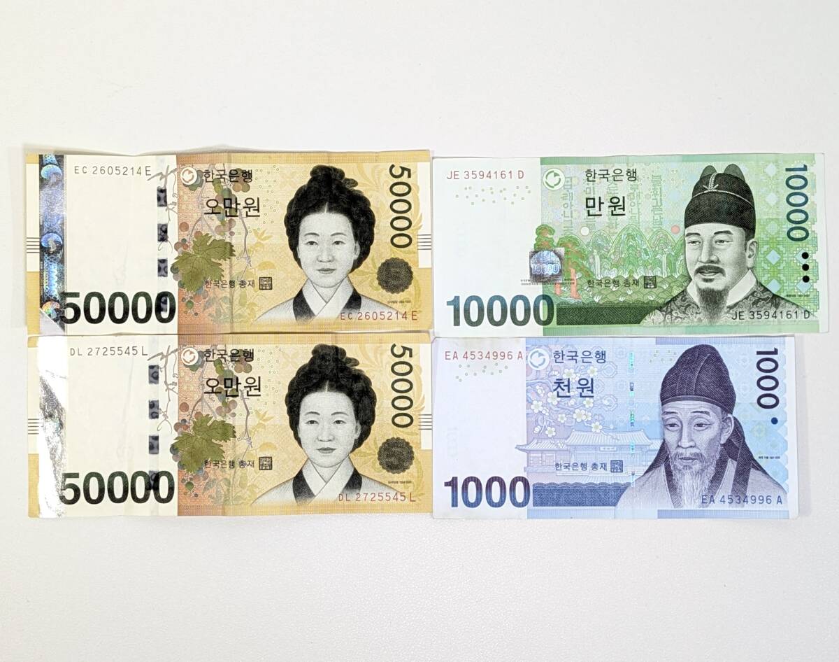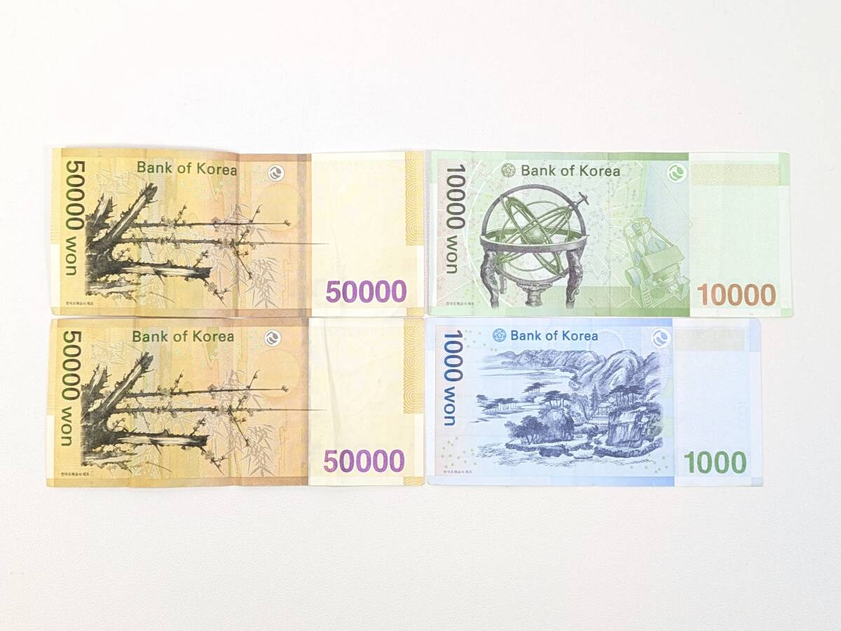 【合計111000ウォン】 韓国 紙幣 50000ウォン札×2枚 10000ウォン札×1枚 1000ウォン札×1枚 ウォン 札 KRW 外国紙幣 まとめ売り